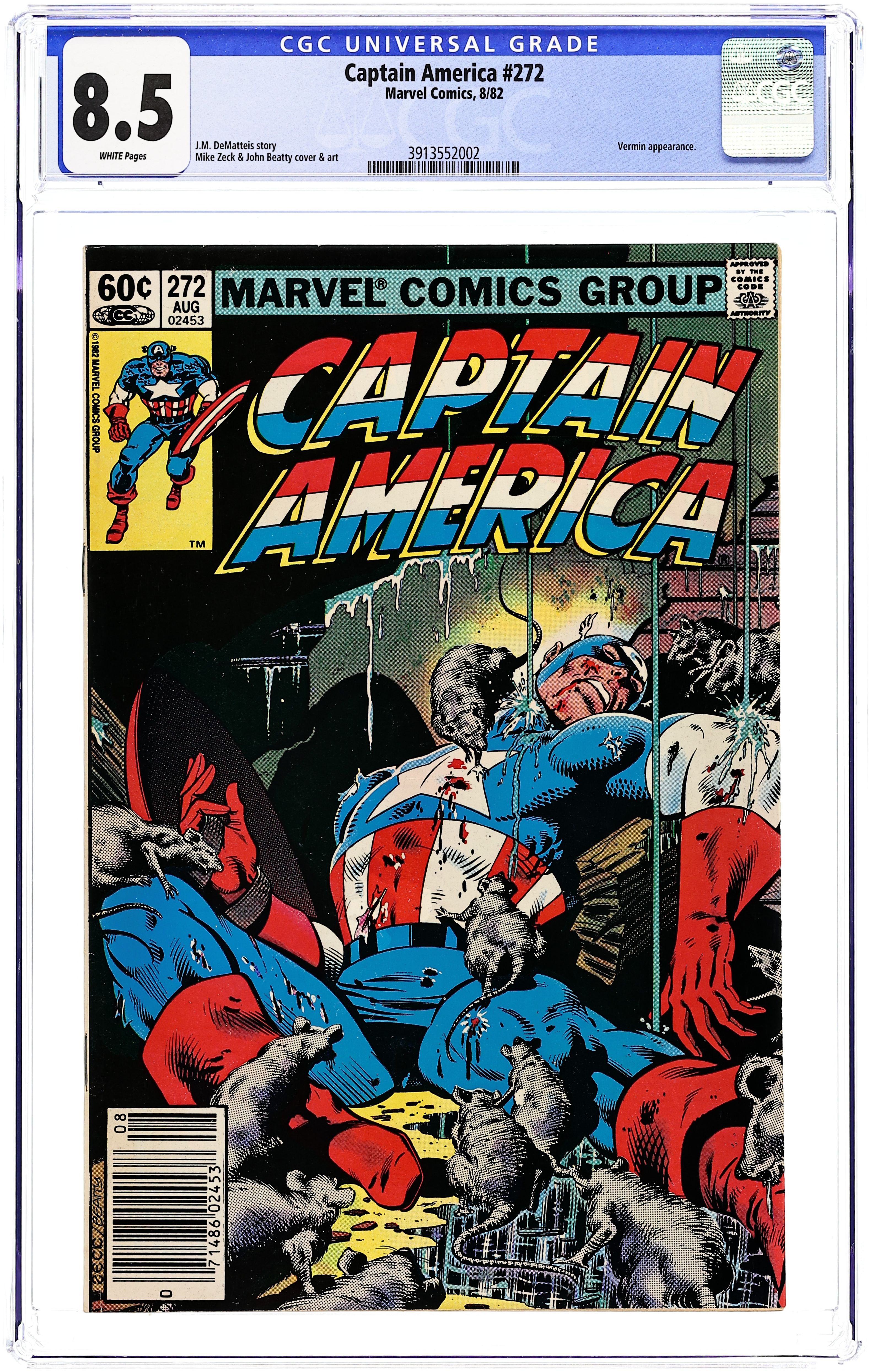 Newsstand Edition. "Mean Streets!" Guest-starring Falcon. Story by J.M. DeMatteis. Art by Mike Zeck and John Beatty. While the Falcon seeks to bring his nephew's shooter to justice, Cap fights for his life against the monstrous might of Vermin. 36 pages, FC. Cover price $0.60.