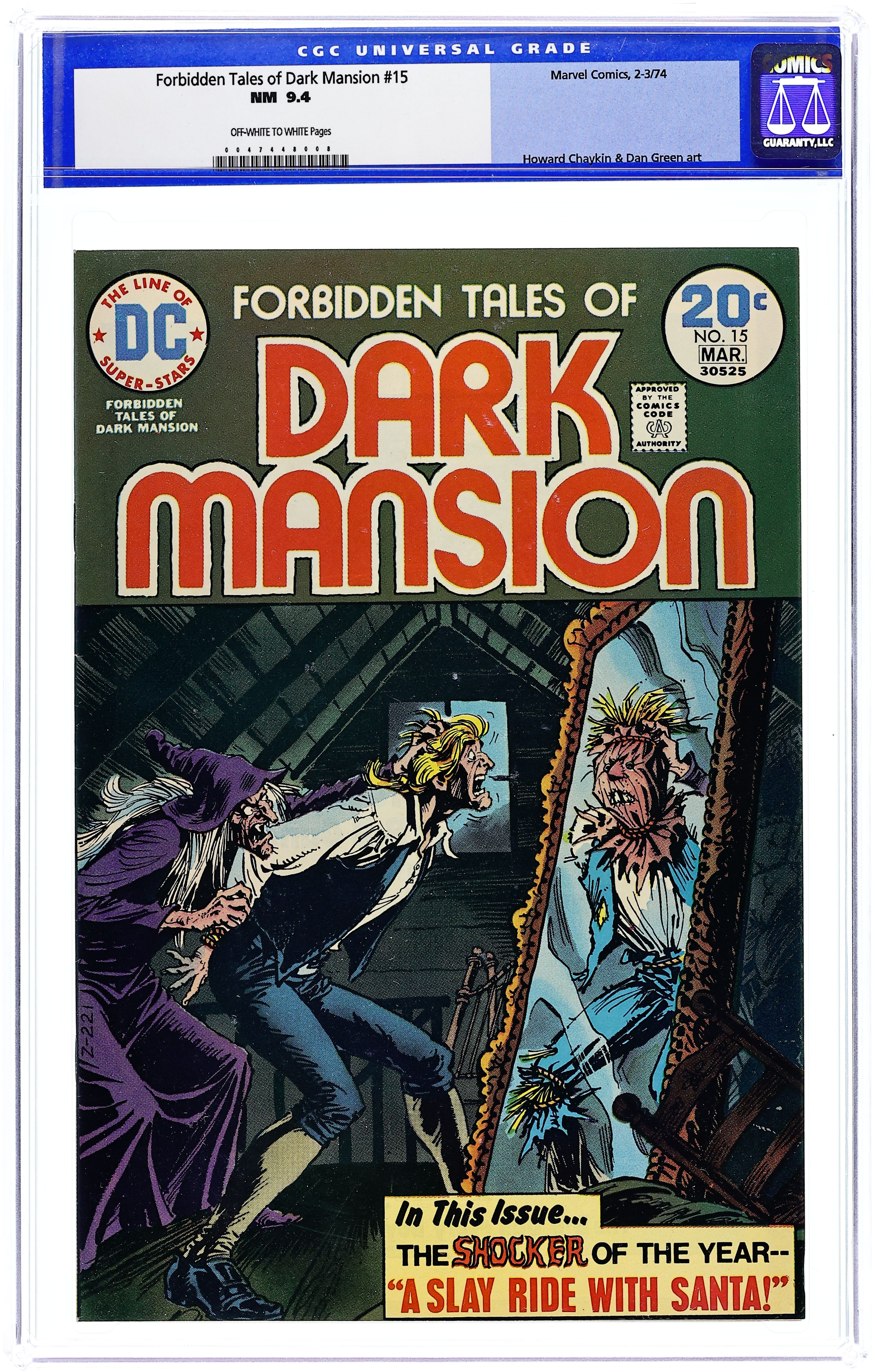 Welcome to the world of the Dark Mansion, a world of the unknown, the suspenseful, and the strange. An anthology comic featuring suspenseful and spooky stories. This issue features "A Slay Ride with Santa," Written by Michael Fleisher and Russell Carley. Art by Dan Green. A man uses his Santa Claus act to commit evil. "Feathertop," Written by Gerry Doudreau. Art by Alex Nino. An adaptation of a Nathaniel Hawthorne story in which a witch transforms a scarecrow into a person. "The Demon Horn," Written by Gerry Boudrea. Art by Gerry Talaoc. A trumpet player gets an offer that he can't refuse. Also art by Howard Chaykin. Cover price $0.20.
