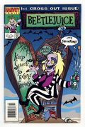 $22.00Newsstand Edition. Stories and art by Angelo De Cesare, Ernie Colon, Frank Hill, Jorge Pacheco and Dave Manak. A revived Harvey, longtime publisher of Casper the Friendly Ghost, presents the most un-Casper-like ghost imaginable. The comic is actually based on the short-lived TV cartoon, based in turn on Tim Burton's first hit movie. The series starts with a retrospective of Beetlejuice's life in the afterlife, followed by his first pin-up. This Is Your Lice; Beetlejuice's 1st Pin-Up ... A Pin-Down; Scuzz-O. 36 pages, full color. Cover price $1.25.