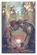Published 2022 by Boom Studios.$6.80The 616 Comics Exclusive Virgin Cover by John Giang. Written by Jason Aaron. Art by Alexandre Tefenkgi. Love in the Wasteland' kicks off the first arc of this epic trilogy that spans a lifetime as the dark mysteries of a ruined world and their own stark differences tear at the threads holding Mezzy and Maceo together. As they endure the horrors of plastic tornadoes and frozen sludge, Maceo proves to be more than just a burden, and they make an unlikely connection. But to their peril... they might not be as alone as they thought... New York Times bestselling, Eisner and Harvey Award-winning writer Jason Aaron (Thor, The Avengers, Southern Bastards) launches his most ambitious original series to date with three distinct artistic partners - Eisner Award-winning artist Alexandre Tefenkgi (The Good Asian), acclaimed artists Leila del Duca (Wonder Woman: Tempest Tossed, Sleepless), and Nick Dragotta (East of West, Ghost Cage) - to take on a vision of the end of the world that's brutal and nostalgic, whimsical and grounded... and ultimately, timeless. Collects Once Upon A Time At The End Of The World #1-5. 32 pages, full color. Rated M