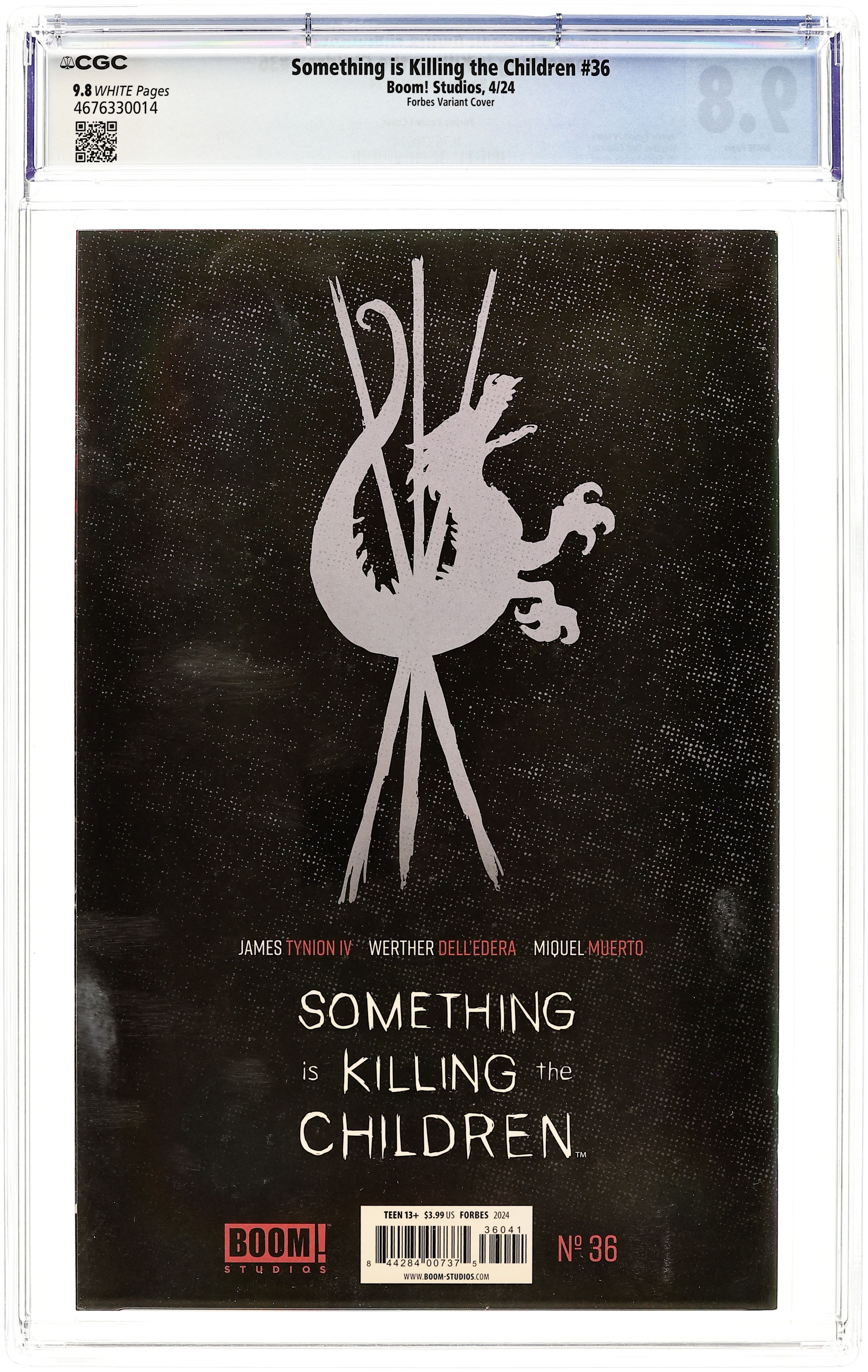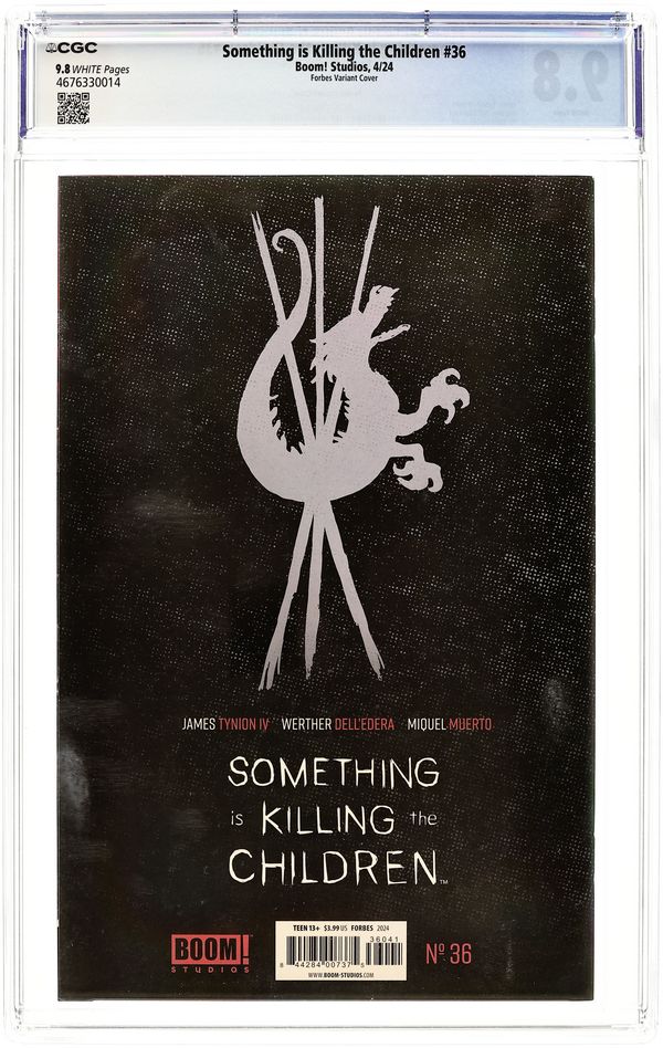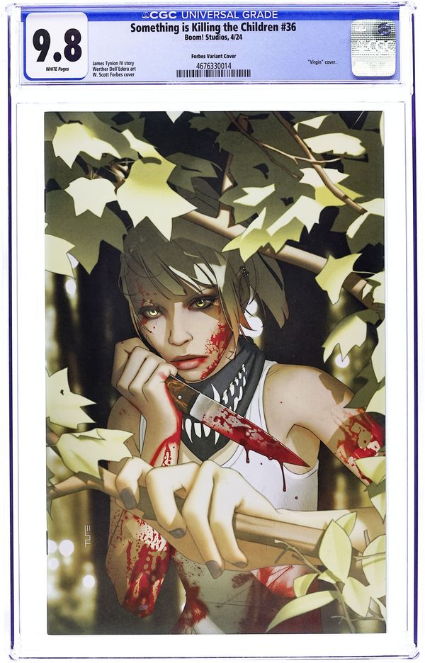 Limited 1 for 25 Retailer Incentive Variant Cover. Written by James Tynion IV. Art by Werther Dell'Edera. Cover by W. Scott Forbes. Something is Killing the Children returns to reveal more of Erica Slaughter's formative past, set before the Archer's Peak saga. A perfect starting point for new readers and die hard Slaughterverse fans alike, each standalone issue of this arc highlights Erica's appearance in five different American towns, chronicling her journey that forged her into the unparalleled monster hunter she is today. 32 pages, full color. Rated T+ Cover price $3.99.