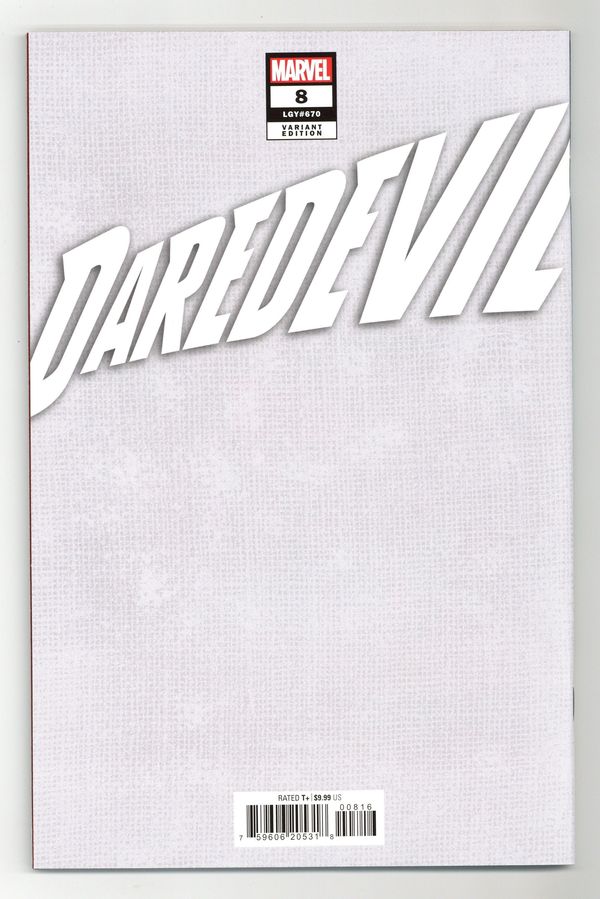 $20.00Limited 1 for 100 Retailer Incentive Variant Cover. Written by Saladin Ahmed. Art by Aaron Kuder. Cover by Frank Miller. SPECIAL OVERSIZED ISSUE MARKING 60 YEARS OF DAREDEVIL! A dragnet is closing around Matt Murdock, A.K.A. DAREDEVIL! Police on both sides of the law are hunting him, something vicious with a deep connection to Matt's very soul is hunting his friends and, in the midst of that chaos, an old foe with the blood of Matt's closest allies on his hands returns… 68 pages, full color. Rated T+ Cover price $9.99.