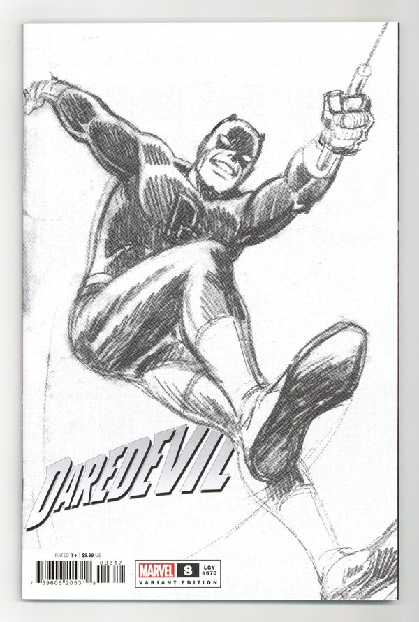 $9.00Limited 1 for 50 Retailer Incentive Variant Cover. Written by Saladin Ahmed. Art by Aaron Kuder. Cover by John Romita Sr. SPECIAL OVERSIZED ISSUE MARKING 60 YEARS OF DAREDEVIL! A dragnet is closing around Matt Murdock, A.K.A. DAREDEVIL! Police on both sides of the law are hunting him, something vicious with a deep connection to Matt's very soul is hunting his friends and, in the midst of that chaos, an old foe with the blood of Matt's closest allies on his hands returns… 68 pages, full color. Rated T+ Cover price $9.99.