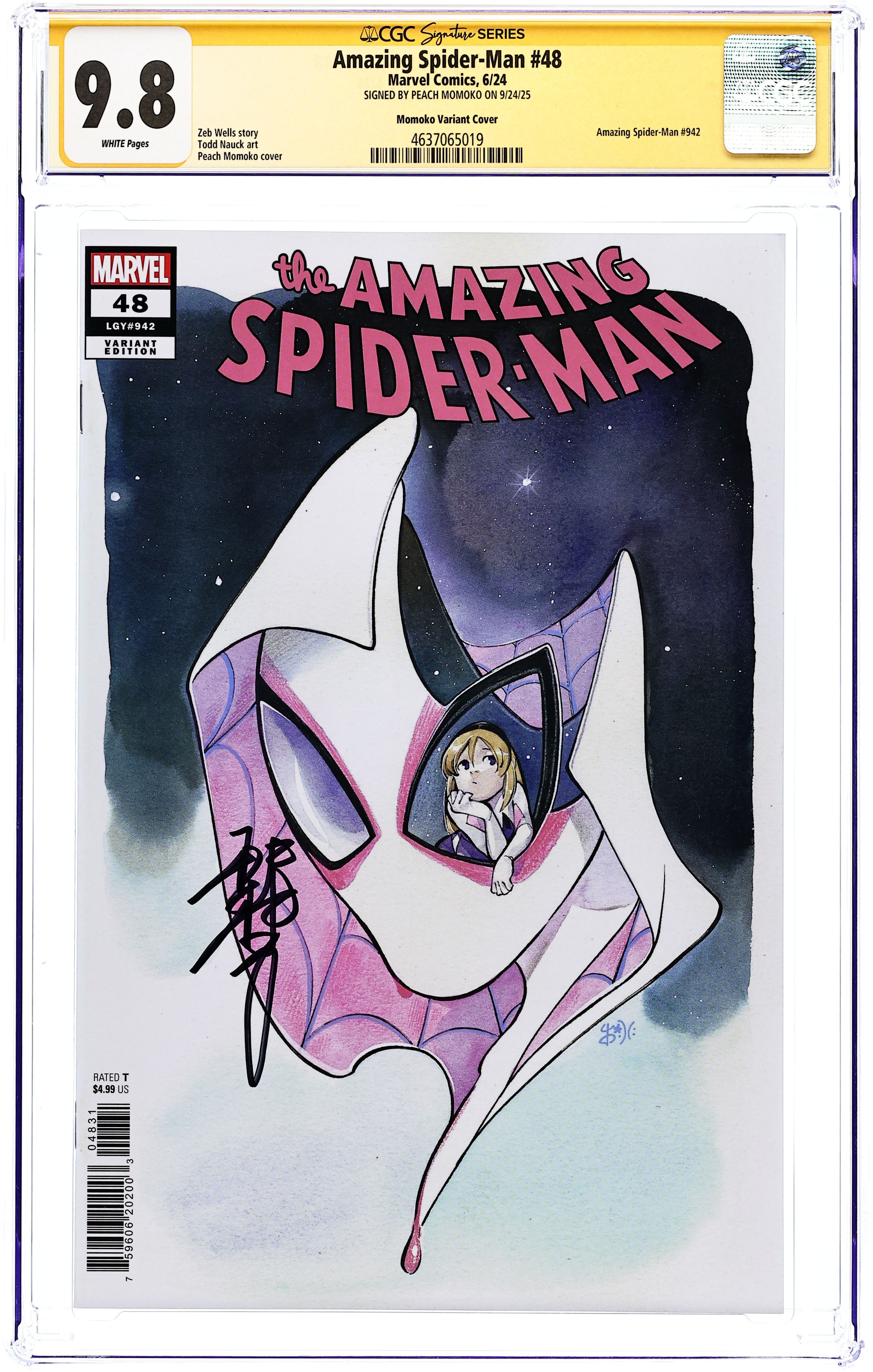 Written by Zeb Wells. Art by Todd Nauck. Cover by Peach Momoko. Peter Parker vs. Ben Reilly! Spider-Man finally gets a rematch! Meanwhile, what is going on with Norman Osborn?! Only two issues left until AMAZING SPIDER-MAN #50! 30 pages, full color. Rated T Cover price $4.99.