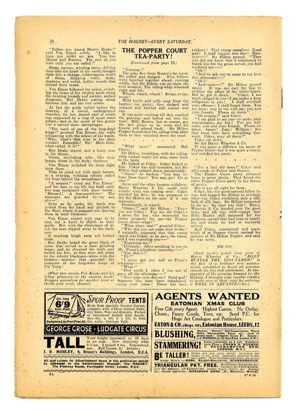 No. 1480 - June 27, 1936. Weekly British publication that ran for nearly 1,700 issues. Featured the anti-hero Billy Bunter of the Greyfriars School, along with serialized shorts. NOTE: This publication contains negative racial and cultural depictions. It reflects some attitudes of the era in which it was published that would not be acceptable today. 7.5" x 11", 28 pages, B&W.