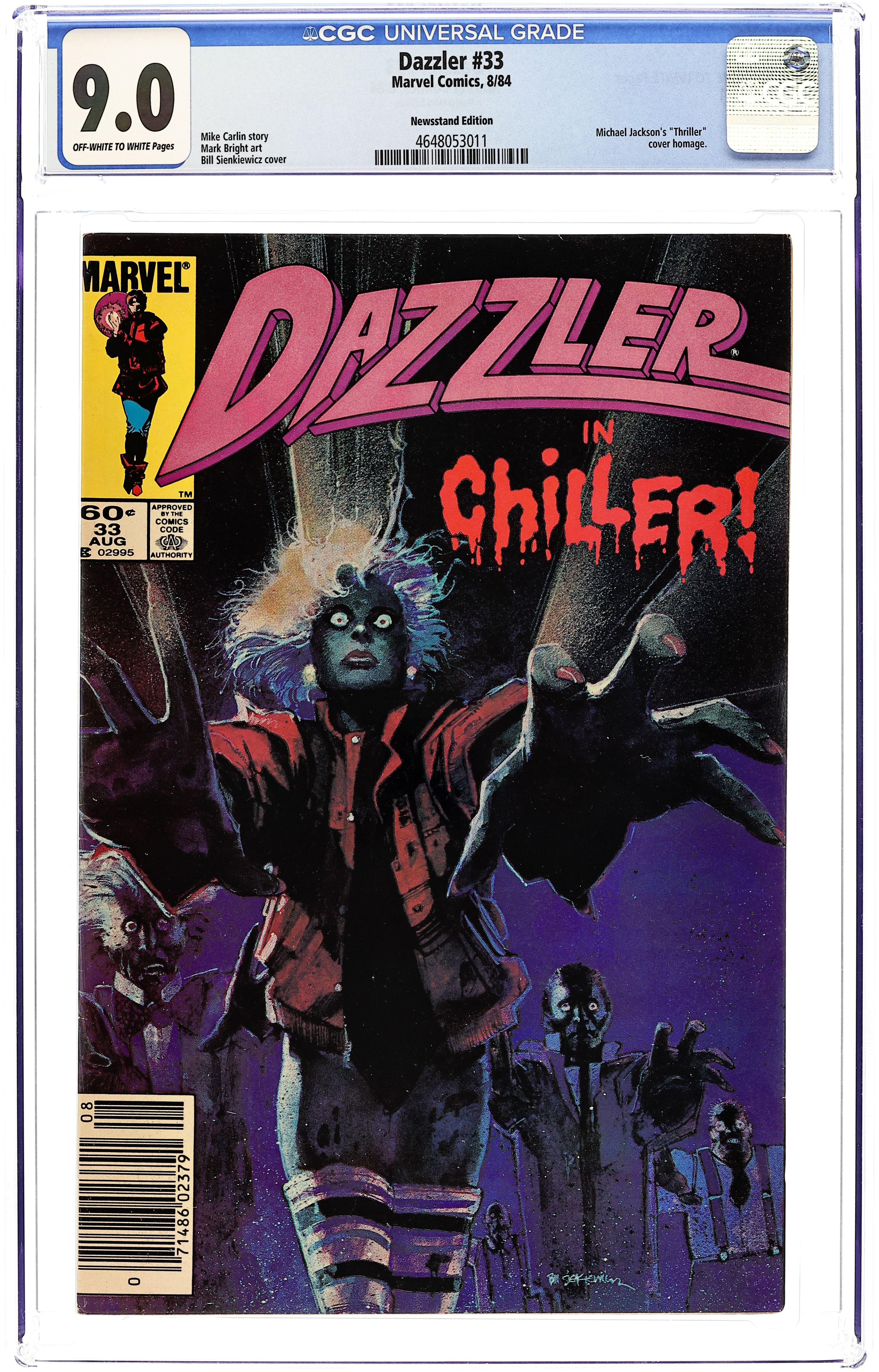 Newsstand Edition. Painted cover art by Bill Sienkiewicz. Chiller!, script by Mike Carlin, pencils by Mark Bright, inks by Vince Colletta; Ali lands a job in a music video that bears an uncanny resemblance to Michael Jackson's Thriller. 36 pgs. $0.60. Cover price $0.60.