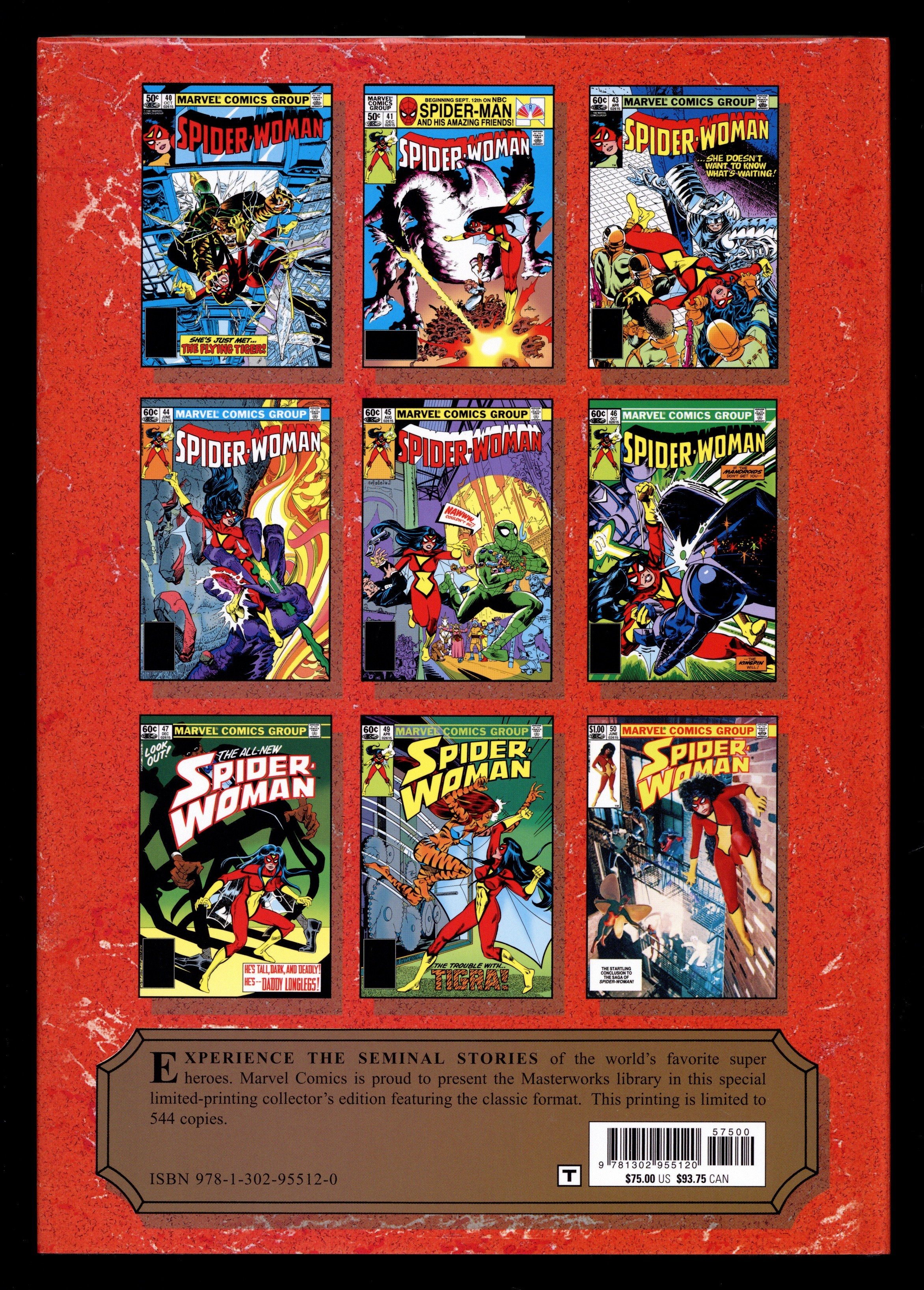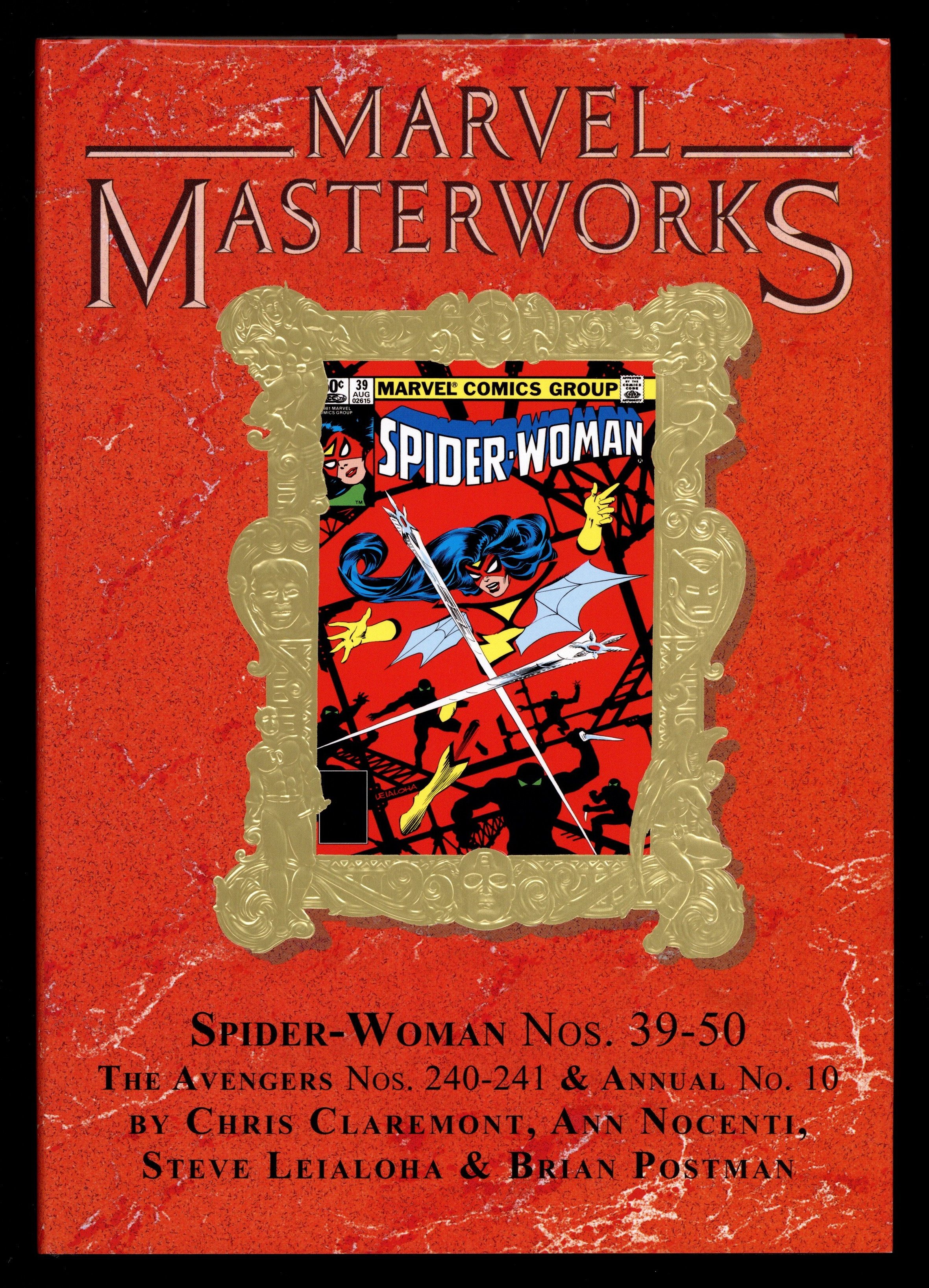 Volume 357 - 1st printing. "Spider-Woman: Book 4!" Collects Spider-Woman (1978-1983 1st Series) #39-50, The Avengers (1963-1996 1st Series) #240-241, and The Avengers (1963-1996 1st Series) Annual #10. Written by Chris Claremont, Ann Nocenti, and Roger Stern. Art by Steve Leialoha, Brian Postman, Al Milgrom, Michael Golden, Bob Wiacek, Carl Potts, Sam de la Rosa, Joe Sinnott, Andy Mushynsky, and Armando Gil.. Cover by Steve Leialoha. Jessica Drew (A.K.A. Spider-Woman) has migrated up the left coast to San Francisco, and her adventures are about to escalate to a whole new level! The Yakuza have infiltrated the SFPD and marked Spider-Woman for death, while the mystic Morgan Le Fay seeks out Jessica with revelations about her connection to the demonic Darkhold! And things get personal in a saga featuring the Silver Samurai and Viper that has shocking implications for our hero's parentage! Chris Claremont and Steve Leialoha then make way for the new creative team of Ann Nocenti and Brian Postman. Their run closes out Spider-Woman's original series with her untimely demise - but death is not the end when you have the Avengers as friends! Hardcover, 400 pages, full color. Rated T Cover price $75.00.