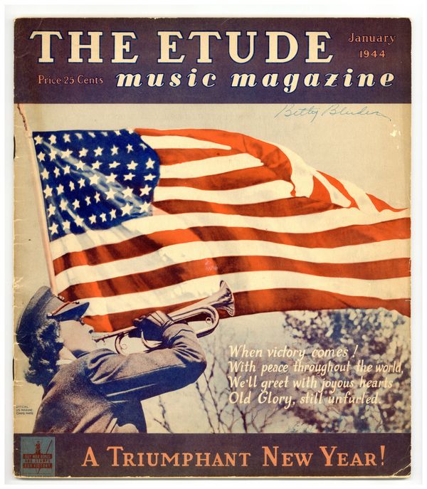 Published Jan 1944 by Theodore Presser.$20.00Monthly magazine aimed at all musicians, from the novice through the serious student to the professional, The Etude printed articles on popular subjects and more scholarly musical subjects (including history, literature, gossip, and politics). 10.5" x 13.25", 76 pages, B&W Cover price $0.25.