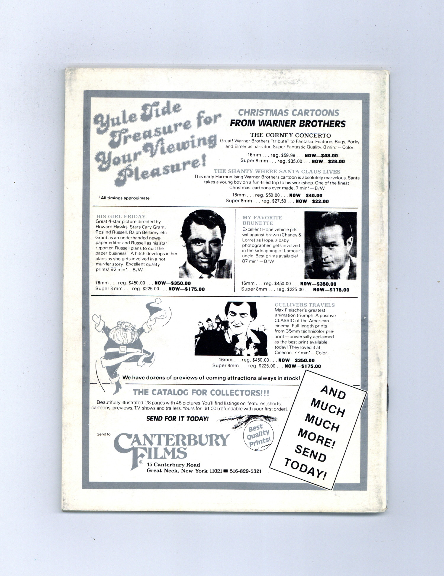 Film in Review is a publication of the National Board of Review of Motion Pictures, Inc, an independent, non-profit organization of public citizens founded in 1909 to represent the interests of the motion picture public. This National Board further assists the development of the motion picture as a source of entertainment, as education, and as art, by providing media for the expression of the public's opinion about films and their cultural and social effects. Cover price $1.75.