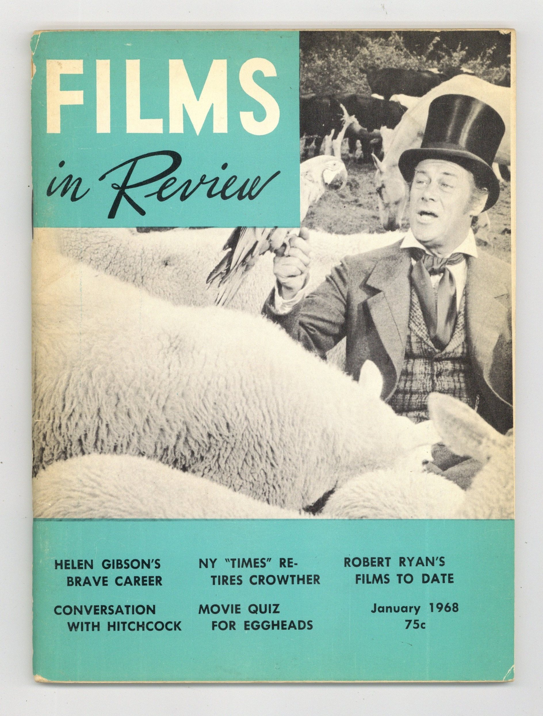 Published Jan 1968 by National Board of Review of Motion Pictures Inc..$17.00Film in Review is a publication of the National Board of Review of Motion Pictures, Inc, an independent, non-profit organization of public citizens founded in 1909 to represent the interests of the motion picture public. This National Board further assists the development of the motion picture as a source of entertainment, as education, and as art, by providing media for the expression of the public's opinion about films and their cultural and social effects. Plus movie reviews and letters. 5 1/2-in. x 7 1/2-in., 63 pages, B&W. Cover price $0.75.