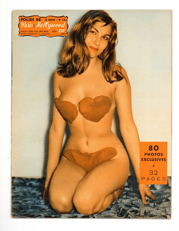 Featured photos of starlets from film sets and performers from the Parisian cabarets. This issue features a full color Bettie Page rear cover. 9.25" x 12", 32 pages, tinted B&W with some color. NOTE: All text in French.