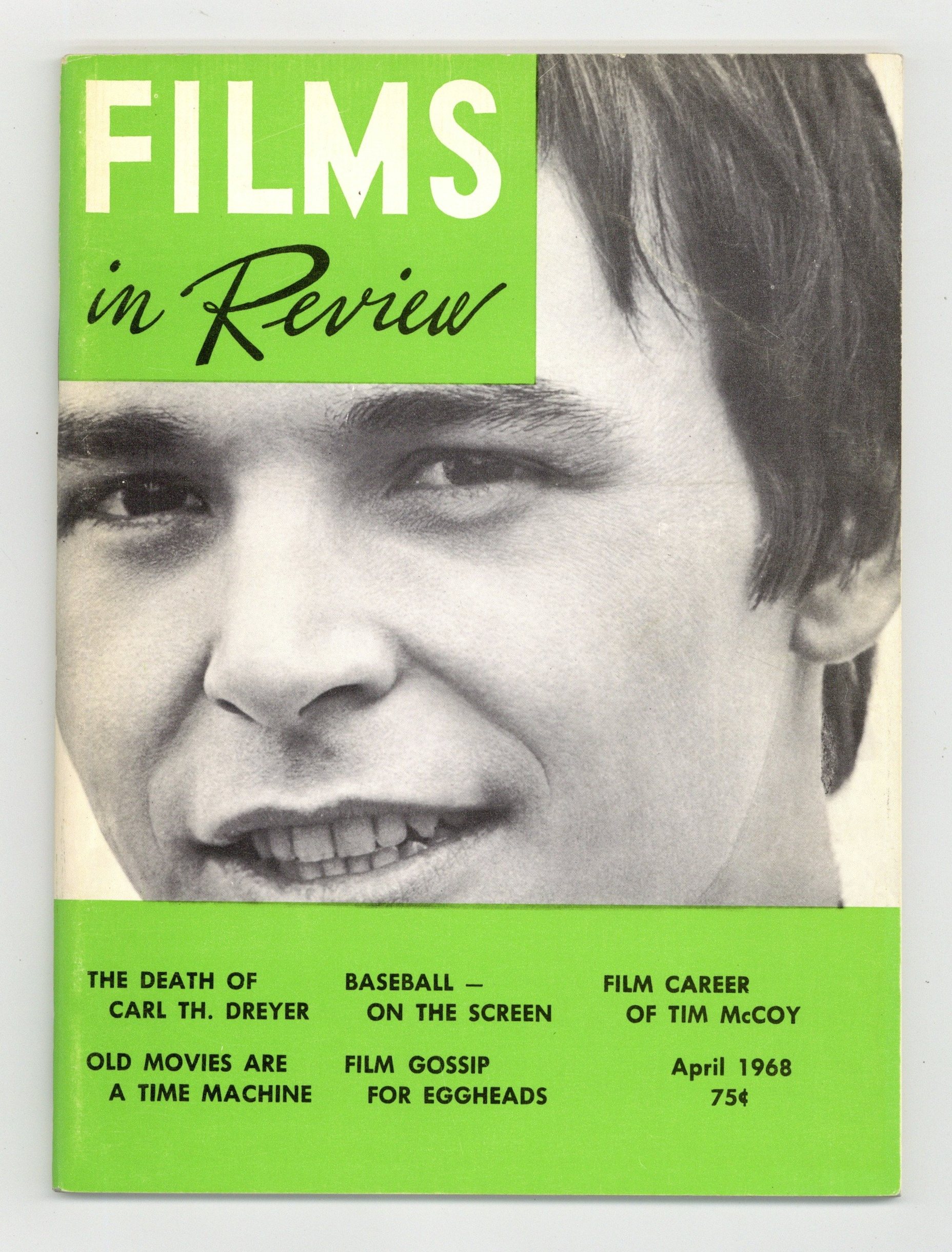 Published Apr 1968 by National Board of Review of Motion Pictures Inc..$17.00Film in Review is a publication of the National Board of Review of Motion Pictures, Inc, an independent, non-profit organization of public citizens founded in 1909 to represent the interests of the motion picture public. This National Board further assists the development of the motion picture as a source of entertainment, as education, and as art, by providing media for the expression of the public's opinion about films and their cultural and social effects. 5 1/2-in. x 7 1/2-in. Cover price $0.75.