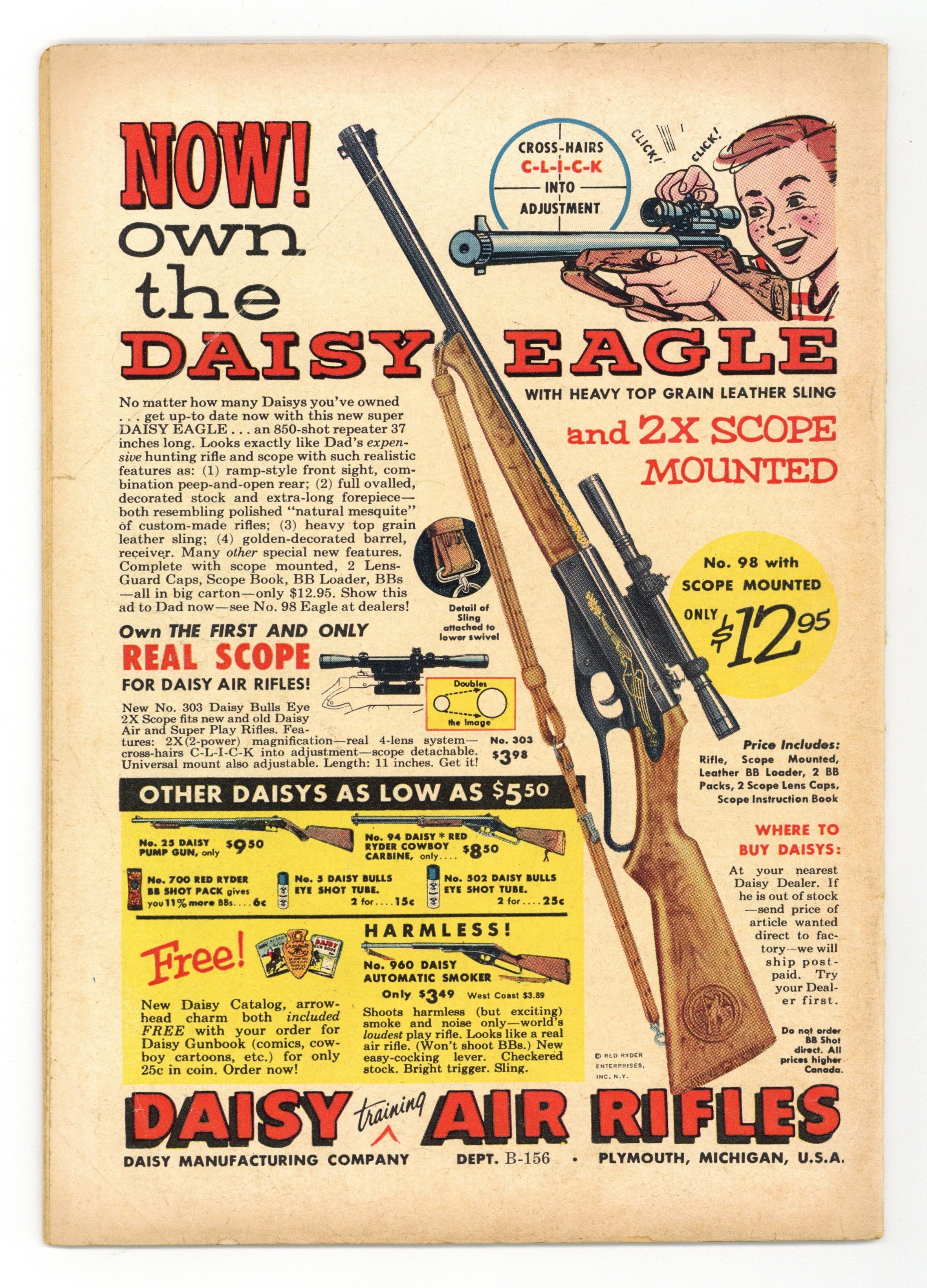 $54.00Little Sure Shot Prototype. Edited by Whitney Ellsworth. Cover by Jerry Grandenetti. Stories by Robert Kanigher, Ross Andru, Mike Esposito, Dave Wood, Bob Forgione, Jack Abel, Bob Haney, Joe Kubert, and Bill Finger. Adventure tales of war and the military, including some humor—go into combat with All American Men of War! 36 Pages, Full Color. Cover price $0.10.