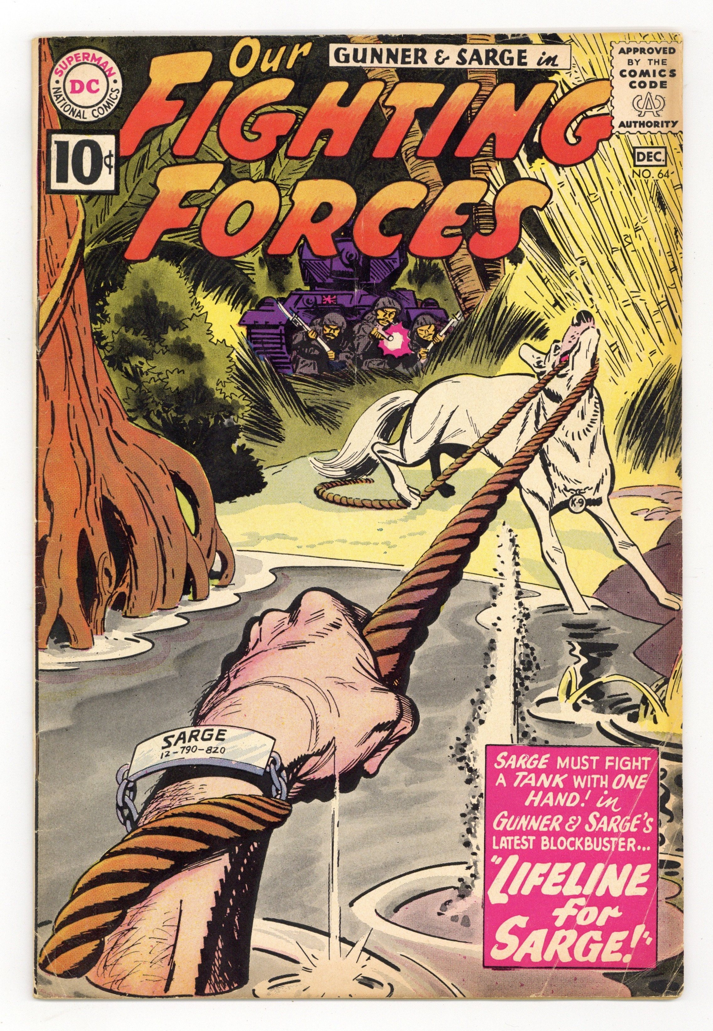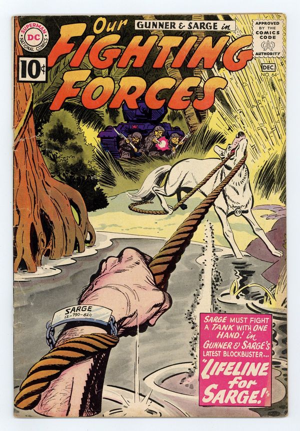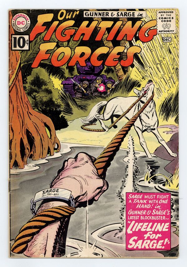 Gunner and Sarge in "Pooch--Tank Hunter!" Back-up story, "Wanted: An Ace" and "Time Bomb Tank!" (art by Russ Heath). 36 Pages, Full Color. Cover price $0.10.