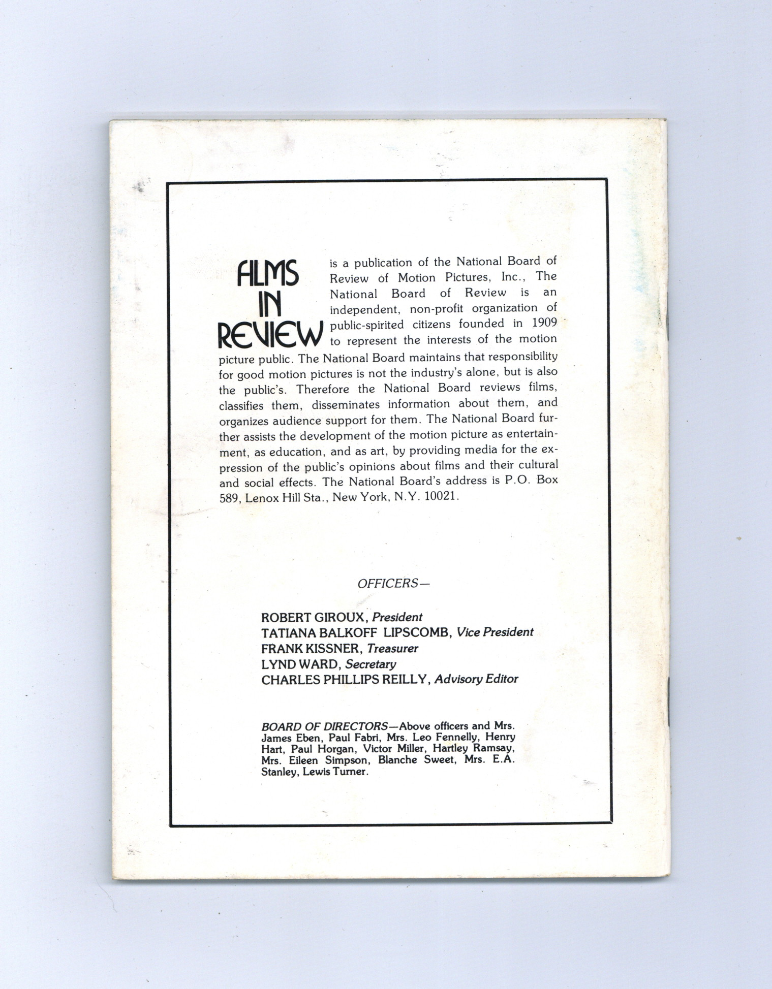 Published Jul 1979 by National Board of Review of Motion Pictures Inc..$3.00