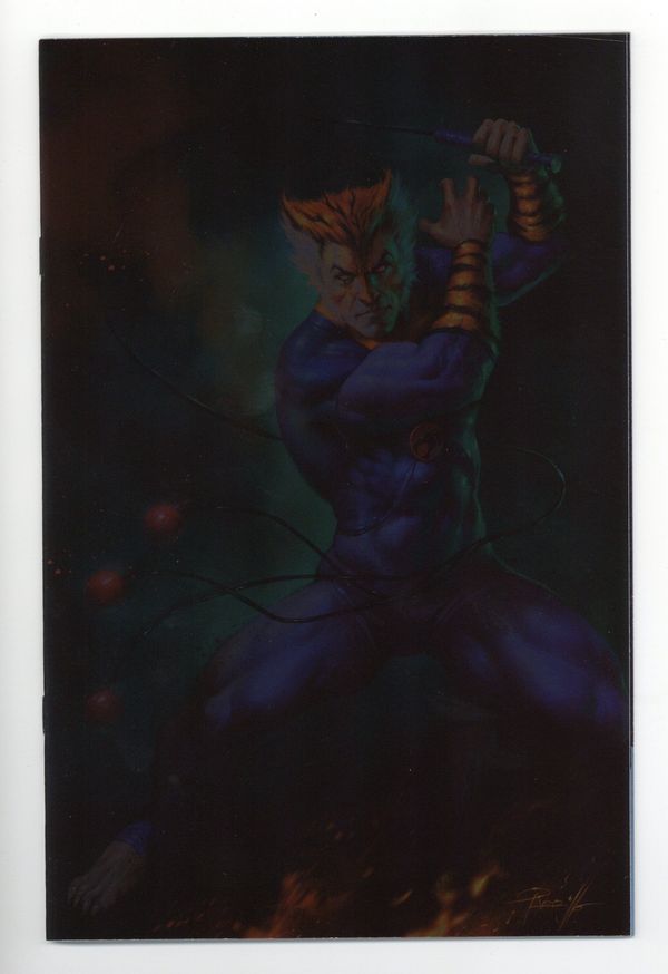 Published May 2024 by Dynamite Entertainment.$32.00Virgin Foil Cover. Written by Declan Shalvey. Art by Drew Moss. Cover by Lucio Parrillo. With the Sword of Omens broken, and bitter division spreading over what to do with Calica, the ThunderCats are in turmoil - and the time is ripe for Mumm-Ra to strike! Casting aside his diminished appearance, the devil-priest attacks with his legion of mummified Mu'Tants. It's the moment of truth for Lion-O - will he prove himself to be a worthy leader? Or will his youth and inexperience condemn the last survivors of Thundera to their final doom? Find out in the planet-shaking climax to the first ThunderCats story arc -brought to life by the acclaimed creative team of DECLAN SHALVEY (Old Dog, Hero Killer) and DREW MOSS (Gargoyles: Dark Ages) and adorned with exceptional covers from DAVID NAKAYAMA, LUCIO PARRILLO, JAE LEE & JUNE CHUNG, SHALVEY, and MOSS! 32 pages, full color. Rated T Cover price $4.99.
