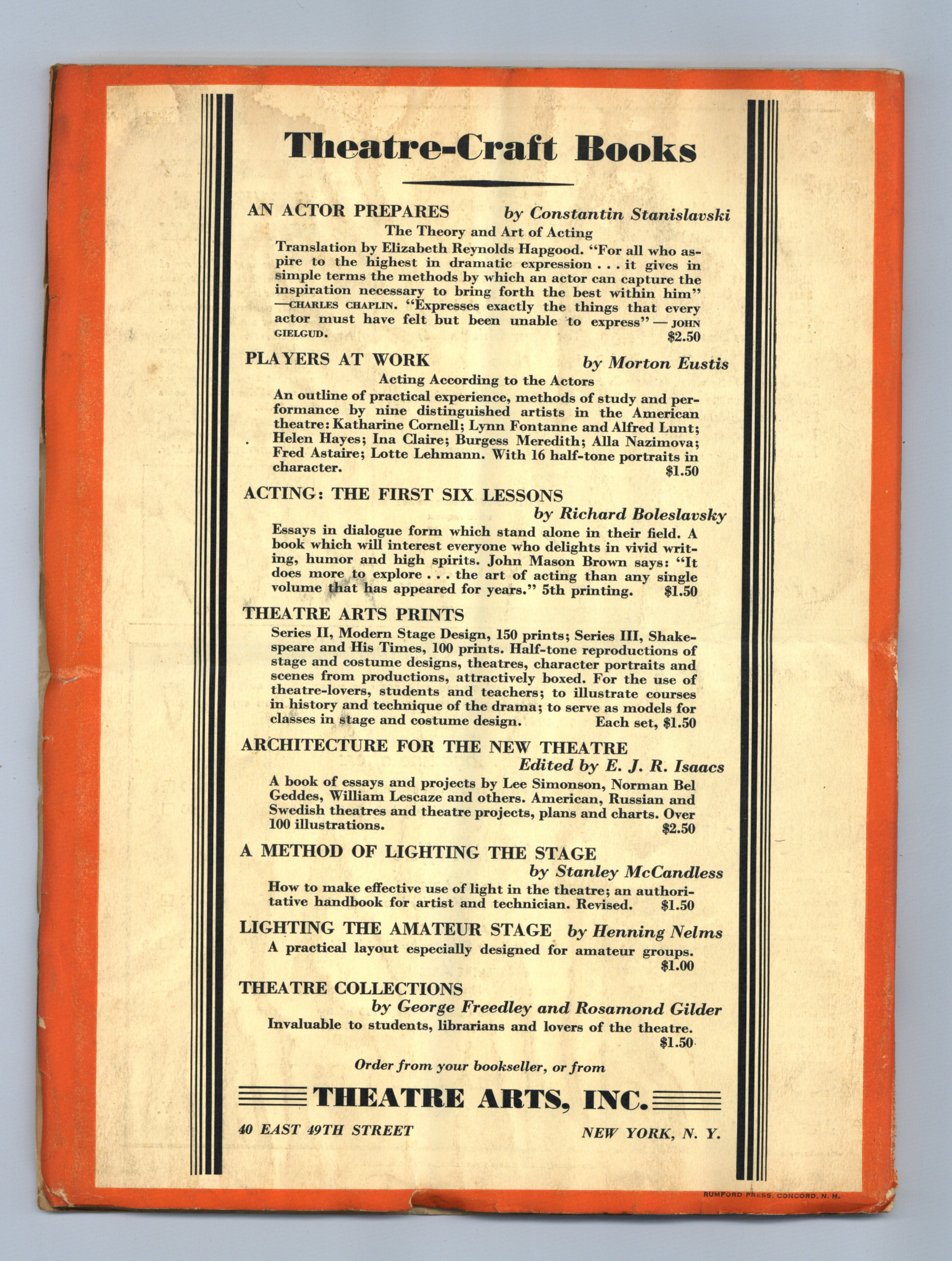 Published Dec 1940 by Theatre Arts, Inc..$6.00- Water damage: Extensive. Staple rust: Slight.