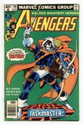 Tags: Avengers$105.00Newsstand Edition. "The Terrible Toll of the Taskmaster" Guest-starring Ant-Man. Script by David Michelinie. Pencils by George Perez. Inks by Jack Abel. Cover by George Perez and Joe Rubinstein. A brand new villain, the Taskmaster, has turned the tables on the Wasp, Yellowjacket, and Ant-Man! The three insect-like super-heroes are prisoners inside the Taskmaster's training academy! The good news is that seven avengers are waiting outside the training compound, but the bad news...none of them know that their teammates are in grave danger! However, Earth Mightiest Heroes follow the ants, and the trail leads to the Taskmaster! Is the villain with the photographic reflexes ready to battle the Avengers? Choose wisely dear Taskmaster! First (full) appearance and origin of the Taskmaster. (Notes: The Taskmaster appears next in Marvel Team-Up 103. The letters page includes a letter from comics writer Kurt Busiek.) 36 pages Cover price $0.40.