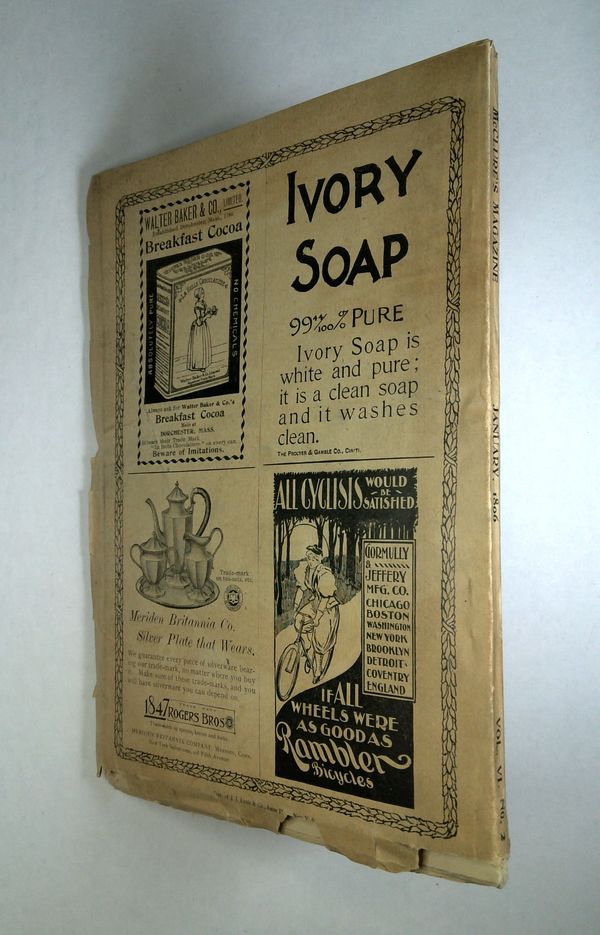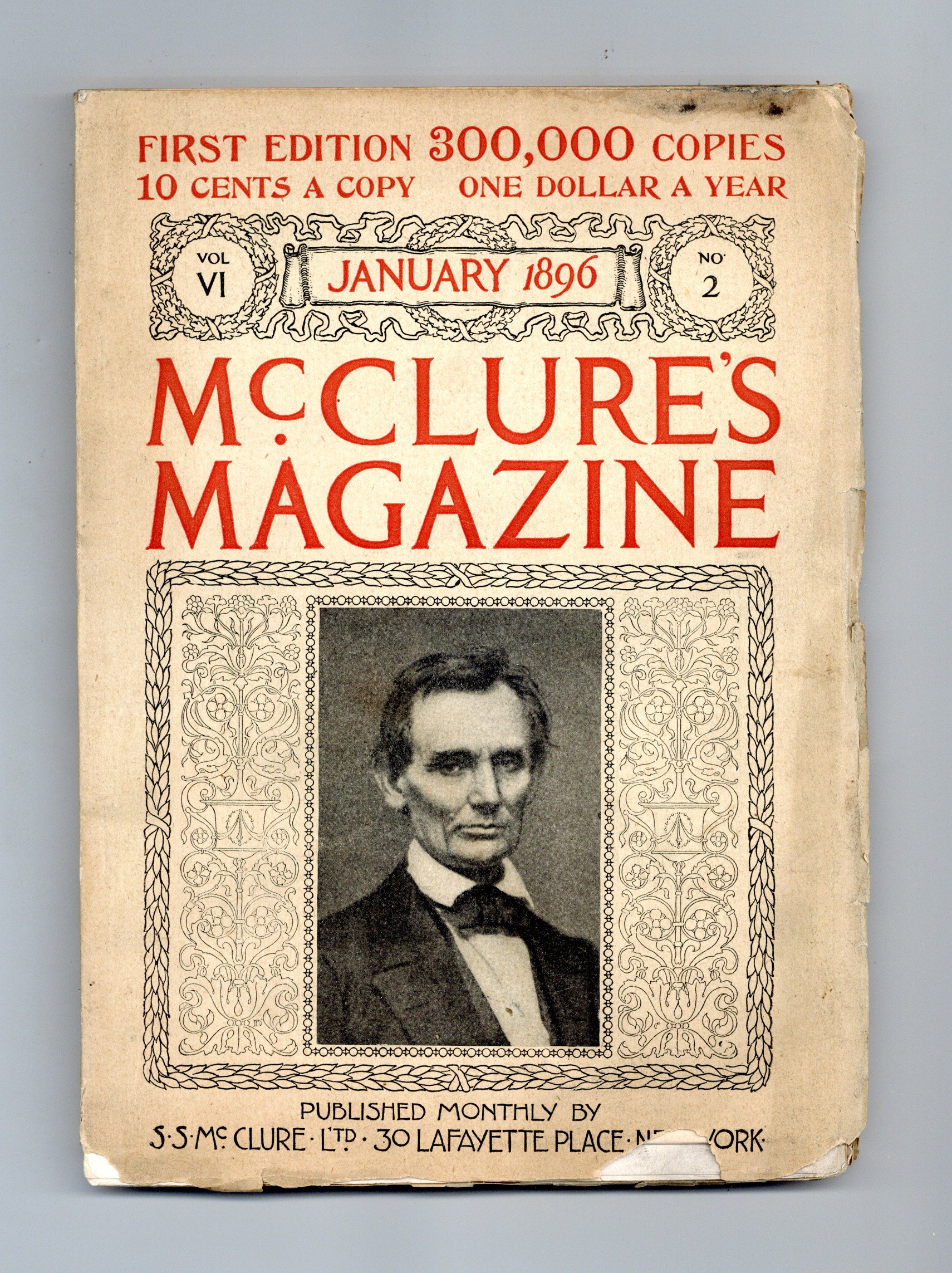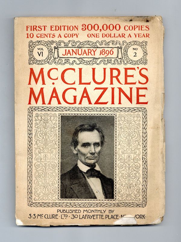 Vol. 6, No. 2 - January 1896. McClure's was a popular mass-market magazine comprised of investigative news articles (often credited as being the origin of muckracking journalism) and fiction stories by popular authors of the day. 6.75" x 9.75", 212 Pages, B&W. Cover price $0.10.