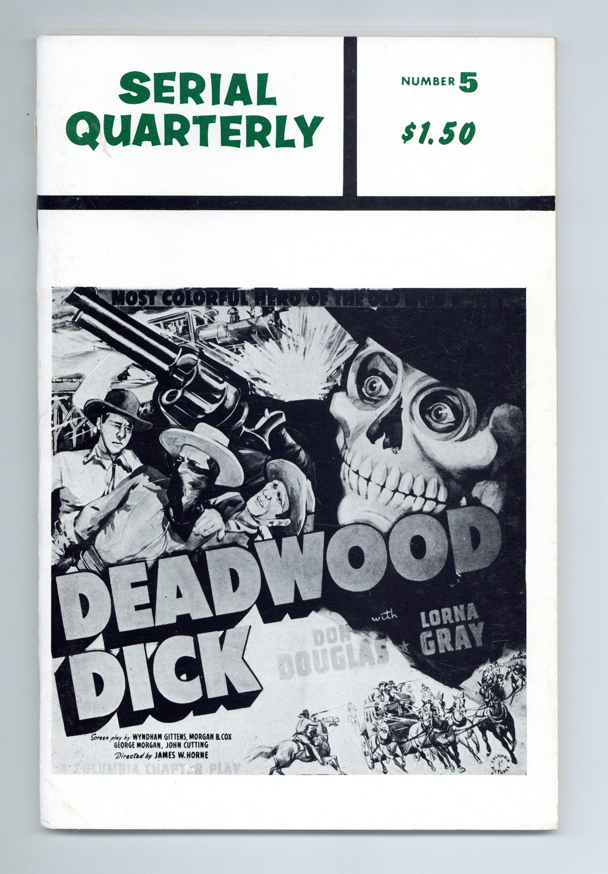 Published Mar 1967 by Screen Facts Press.$24.00Volume 2, Number 1. In this issue: Episode guide for "G-Men vs. The Black Dragon", "The Secret Code", "The Green Archer" and "Deadwood Dick". Compiled by Alan G. Barbour. 5 1/2-in x 8 1/2-in, 68 Pages, B&W. Cover price $1.50.