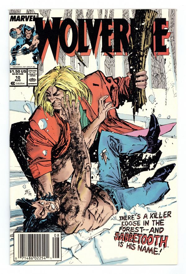 Newsstand Edition. "Hours!" Written by Chris Claremont. Art by John Buscema and Bill Sienkiewicz. Cover by Bill Sienkiewicz. On his birthday, Logan reflects on the murder of Silver Fox, the woman he loved, and Sabretooth, the man that murdered her! Featuring one of the earliest and most brutal battles between these two hated arch enemies. Kent Williams art on back cover (last back cover pin-up). Cover price $1.50.