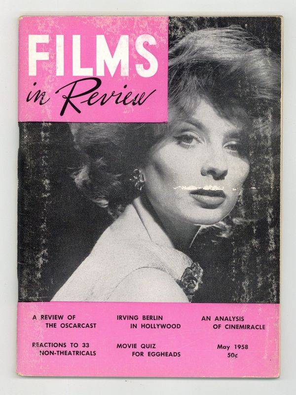 Film in Review is a publication of the National Board of Review of Motion Pictures, Inc, an independent, non-profit organization of public citizens founded in 1909 to represent the interests of the motion picture public. This National Board further assists the development of the motion picture as a source of entertainment, as education, and as art, by providing media for the expression of the public's opinion about films and their cultural and social effects. 5 1/2-in. x 7 1/2-in., 52 pages, B&W. Cover price $0.50.