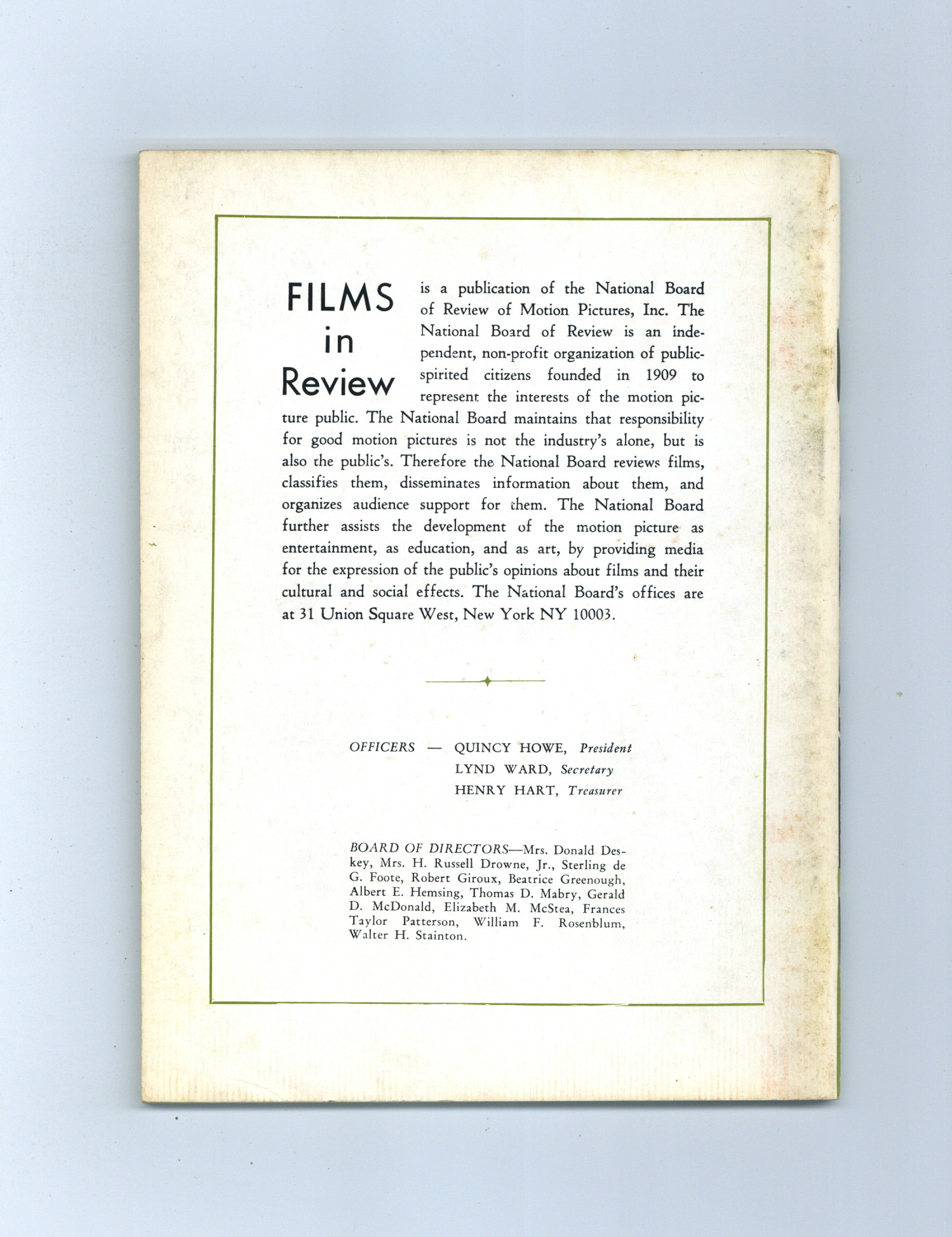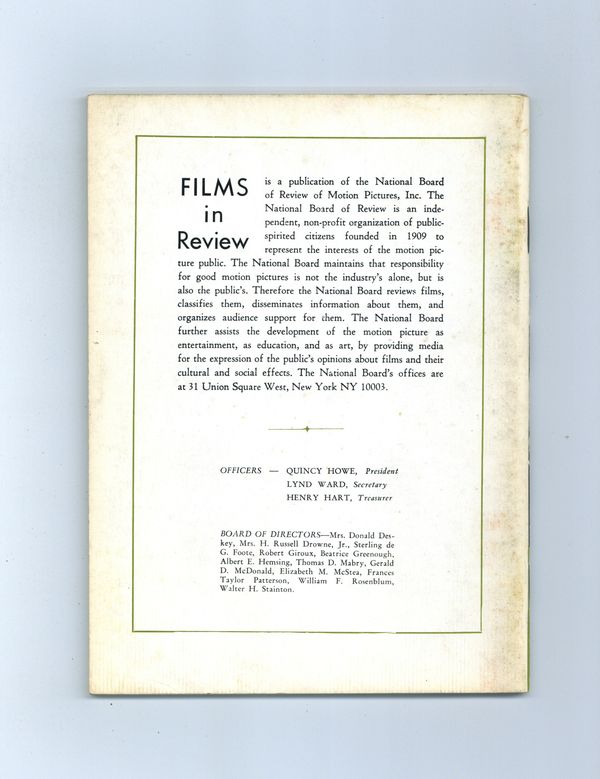 Published Sep 1968 by National Board of Review of Motion Pictures Inc..$5.80- Staple rust: Slight.