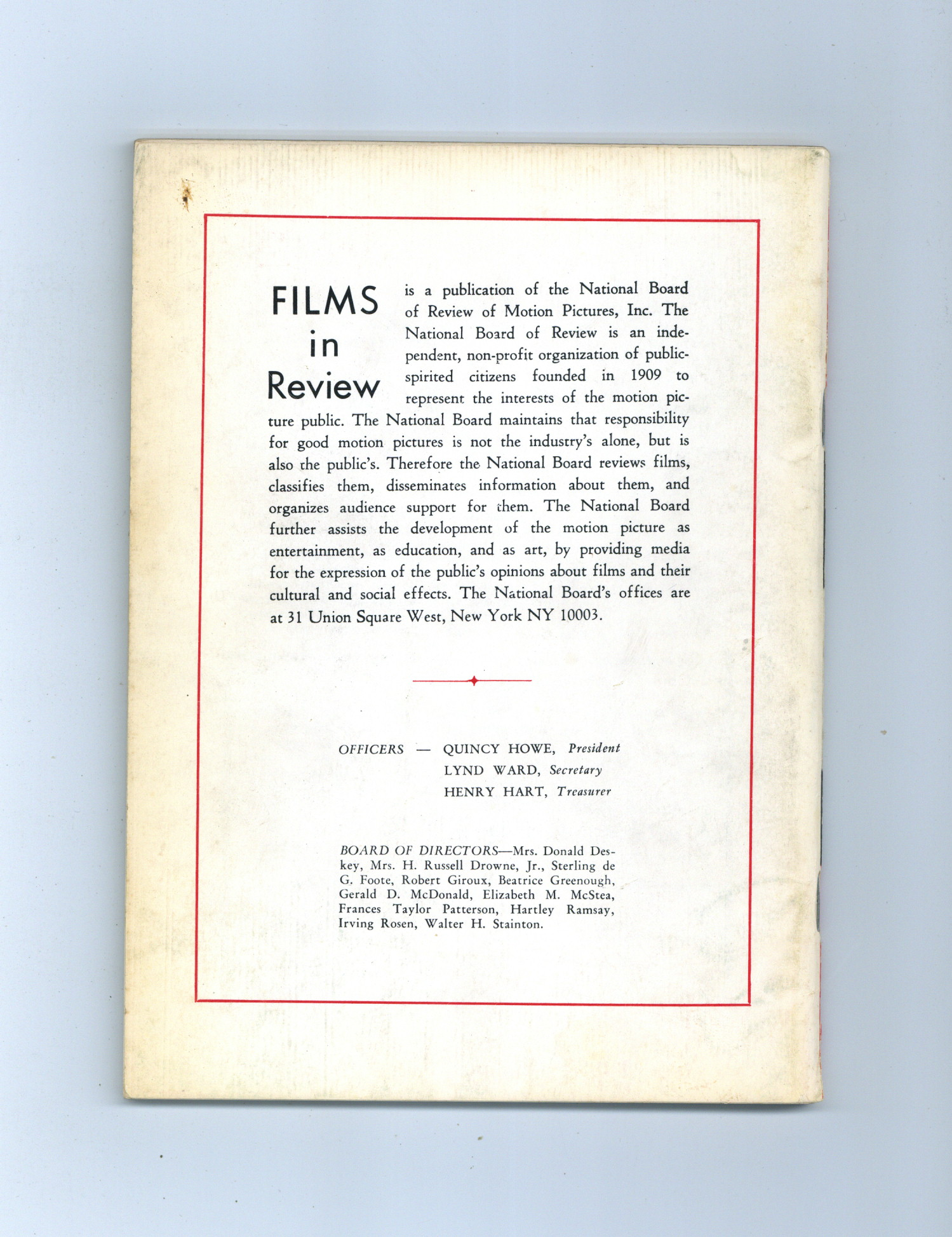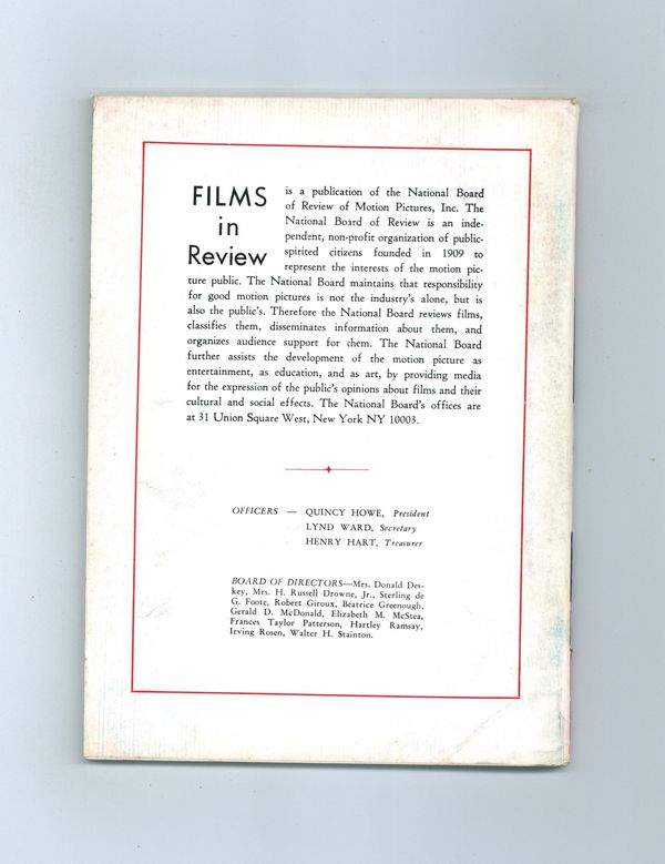 Published Dec 1968 by National Board of Review of Motion Pictures Inc..$10.00If you add this item to your want list, we will email you when it becomes available.