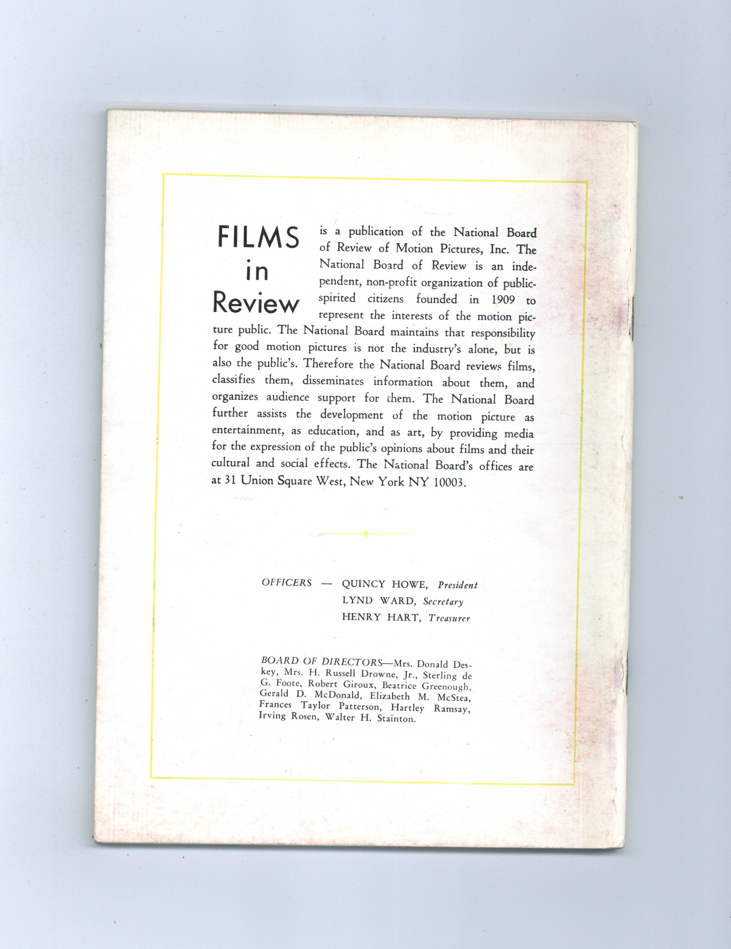Published Dec 1968 by National Board of Review of Motion Pictures Inc..$9.60If you add this item to your want list, we will email you when it becomes available.