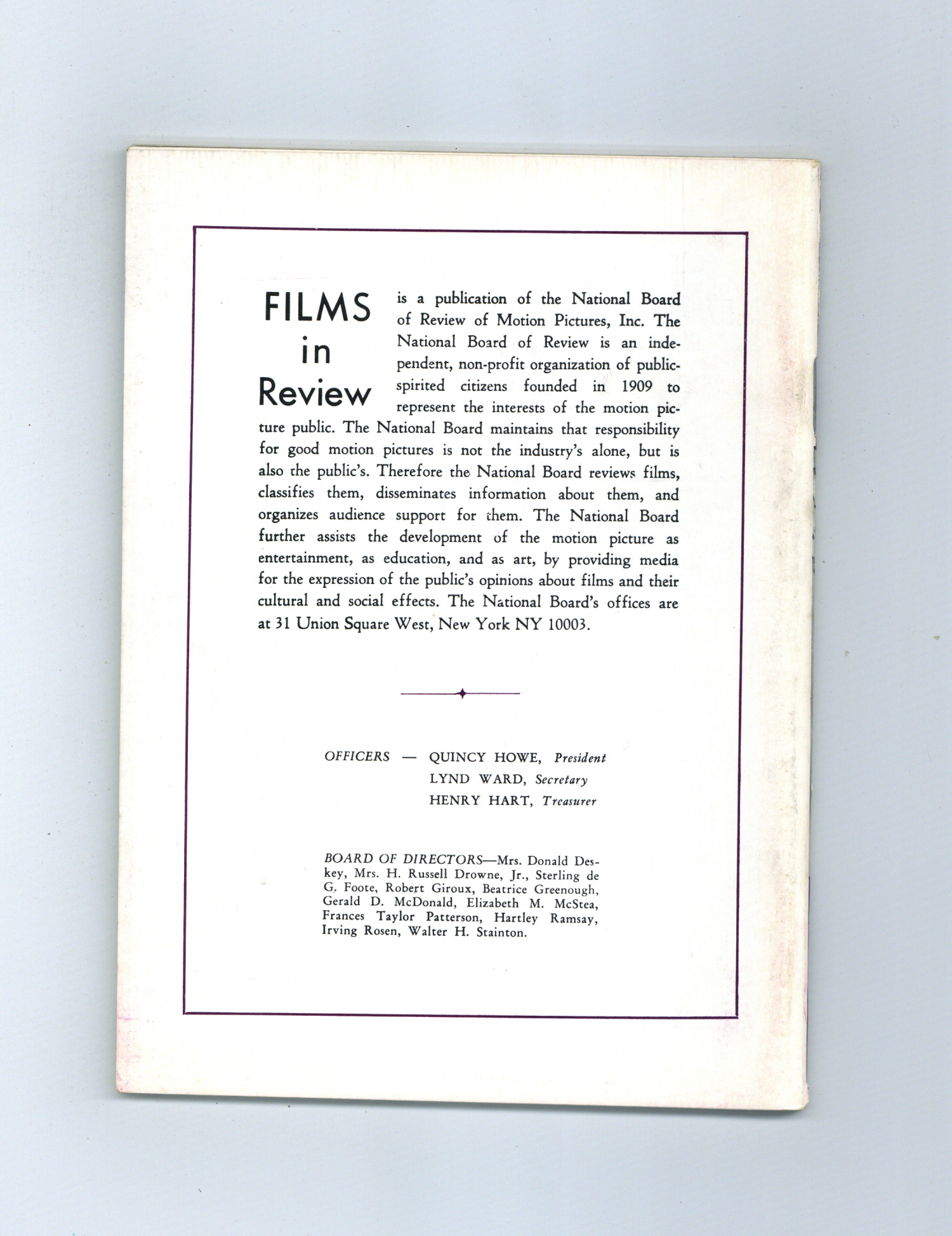 Published Jan 1969 by National Board of Review of Motion Pictures Inc..$10.00If you add this item to your want list, we will email you when it becomes available.