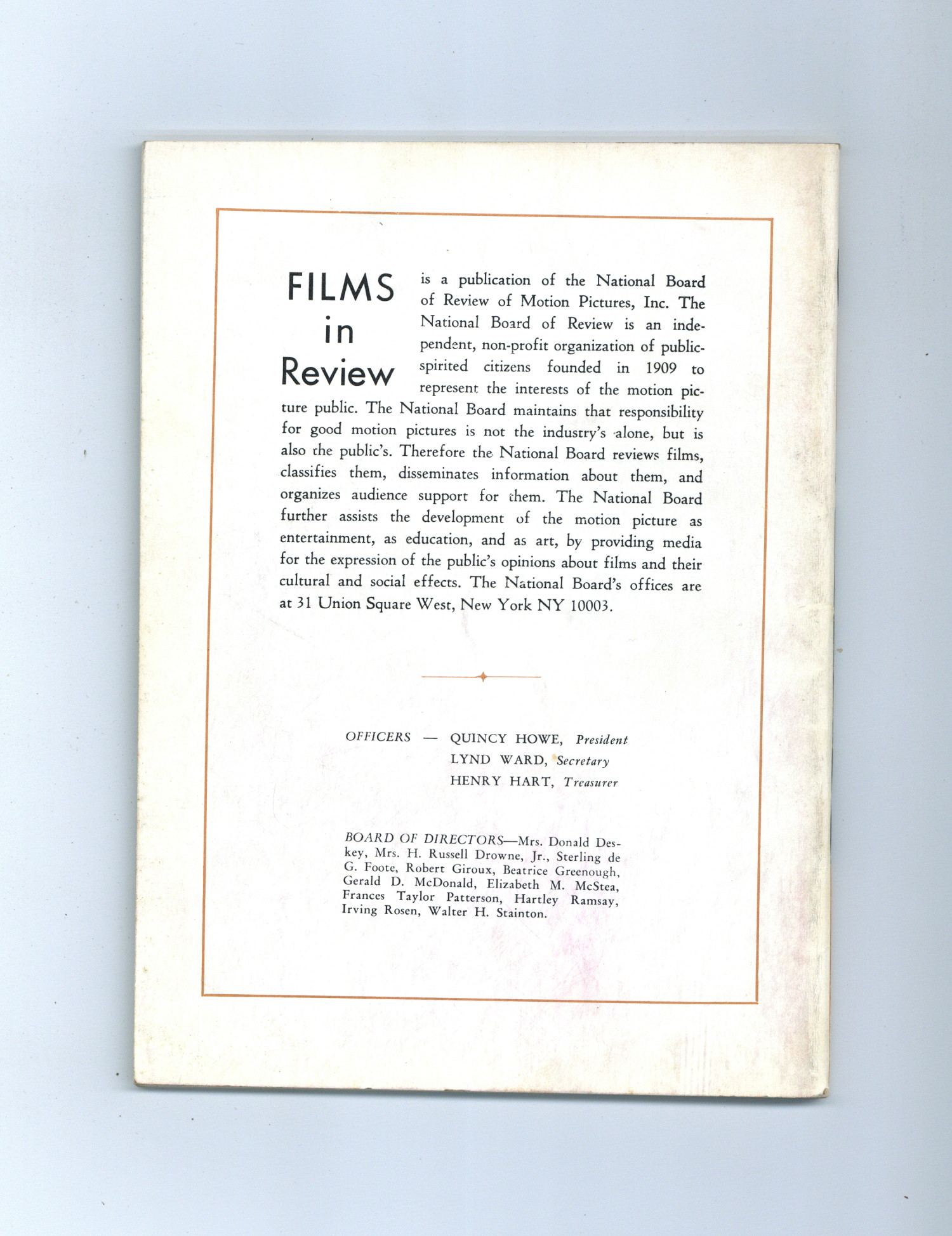 Published Feb 1969 by National Board of Review of Motion Pictures Inc..$5.80If you add this item to your want list, we will email you when it becomes available.