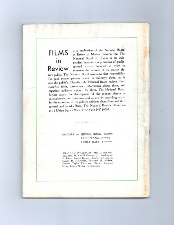Published Mar 1969 by National Board of Review of Motion Pictures Inc..$10.00If you add this item to your want list, we will email you when it becomes available.