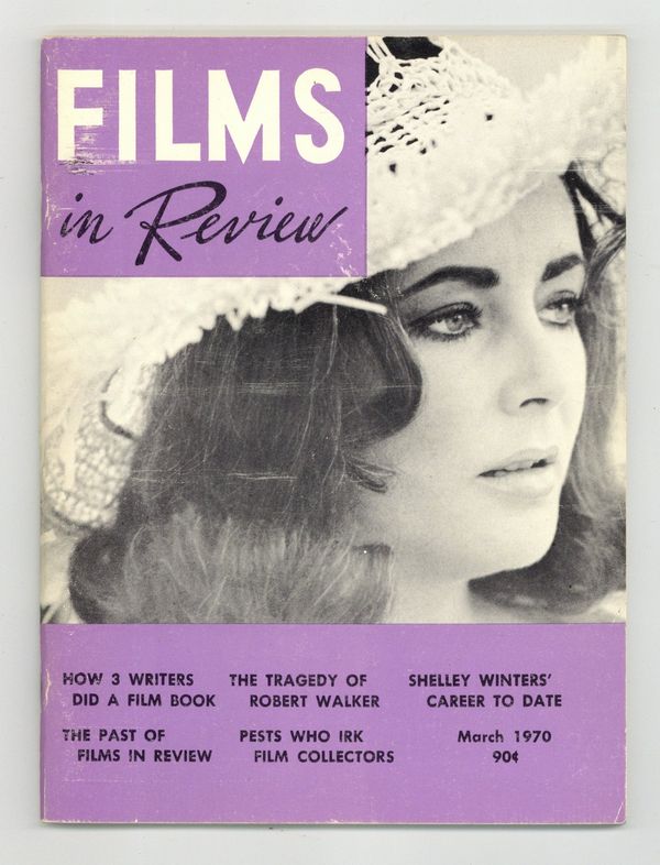 Published Mar 1970 by National Board of Review of Motion Pictures Inc..$3.00Film in Review is a publication of the National Board of Review of Motion Pictures, Inc, an independent, non-profit organization of public citizens founded in 1909 to represent the interests of the motion picture public. This National Board further assists the development of the motion picture as a source of entertainment, as education, and as art, by providing media for the expression of the public's opinion about films and their cultural and social effects. 5 1/2-in. x 7 1/2-in., 64 pages, B&W. Cover price $0.90.