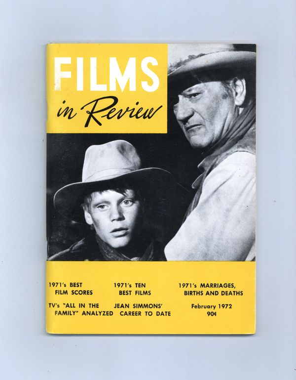 Published Feb 1972 by National Board of Review of Motion Pictures Inc..$12.75Film in Review is a publication of the National Board of Review of Motion Pictures, Inc, an independent, non-profit organization of public citizens founded in 1909 to represent the interests of the motion picture public. This National Board further assists the development of the motion picture as a source of entertainment, as education, and as art, by providing media for the expression of the public's opinion about films and their cultural and social effects. 5 1/2-in. x 7 1/2-in., 64 pages, B&W. Cover price $0.90.