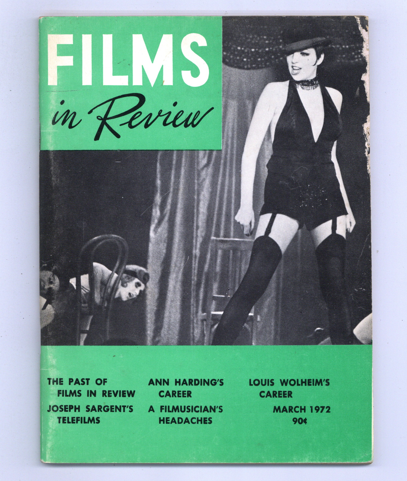Published Mar 1972 by National Board of Review of Motion Pictures Inc..$7.80Film in Review is a publication of the National Board of Review of Motion Pictures, Inc, an independent, non-profit organization of public citizens founded in 1909 to represent the interests of the motion picture public. This National Board further assists the development of the motion picture as a source of entertainment, as education, and as art, by providing media for the expression of the public's opinion about films and their cultural and social effects. 5 1/2-in. x 7 1/2-in., 64 pages, B&W. Cover price $0.90.