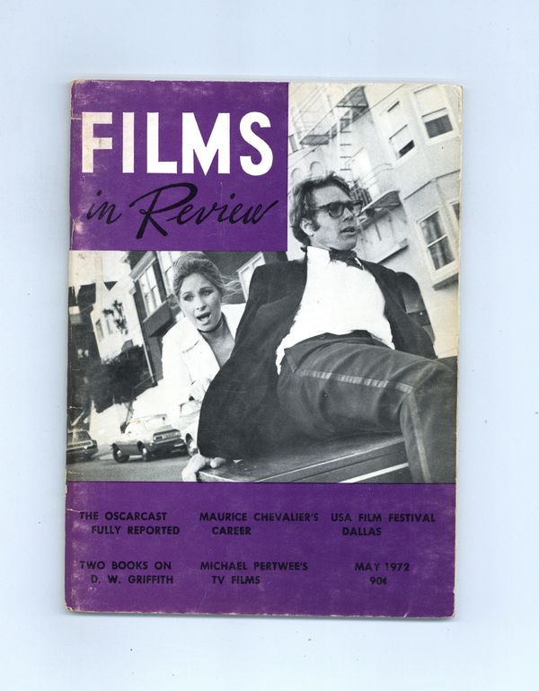 Published May 1972 by National Board of Review of Motion Pictures Inc..$2.65Film in Review is a publication of the National Board of Review of Motion Pictures, Inc, an independent, non-profit organization of public citizens founded in 1909 to represent the interests of the motion picture public. This National Board further assists the development of the motion picture as a source of entertainment, as education, and as art, by providing media for the expression of the public's opinion about films and their cultural and social effects. 5 1/2-in. x 7 1/2-in., 64 pages, B&W. Cover price $0.90.