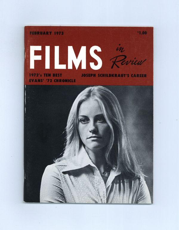 Published Feb 1973 by National Board of Review of Motion Pictures Inc..$12.75Film in Review is a publication of the National Board of Review of Motion Pictures, Inc, an independent, non-profit organization of public citizens founded in 1909 to represent the interests of the motion picture public. This National Board further assists the development of the motion picture as a source of entertainment, as education, and as art, by providing media for the expression of the public's opinion about films and their cultural and social effects. 5 1/2-in. x 7 1/2-in., 64 pages, B&W. Cover price $1.00.