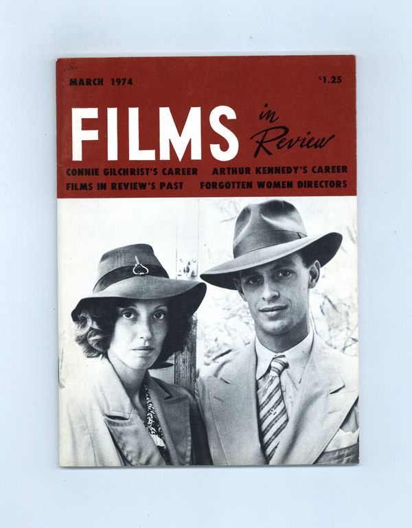 Published Mar 1974 by National Board of Review of Motion Pictures Inc..$12.75Film in Review is a publication of the National Board of Review of Motion Pictures, Inc, an independent, non-profit organization of public citizens founded in 1909 to represent the interests of the motion picture public. This National Board further assists the development of the motion picture as a source of entertainment, as education, and as art, by providing media for the expression of the public's opinion about films and their cultural and social effects. 5 1/2-in. x 7 1/2-in., 64 pages, B&W. Cover price $1.25.