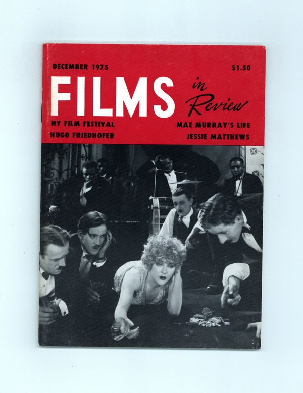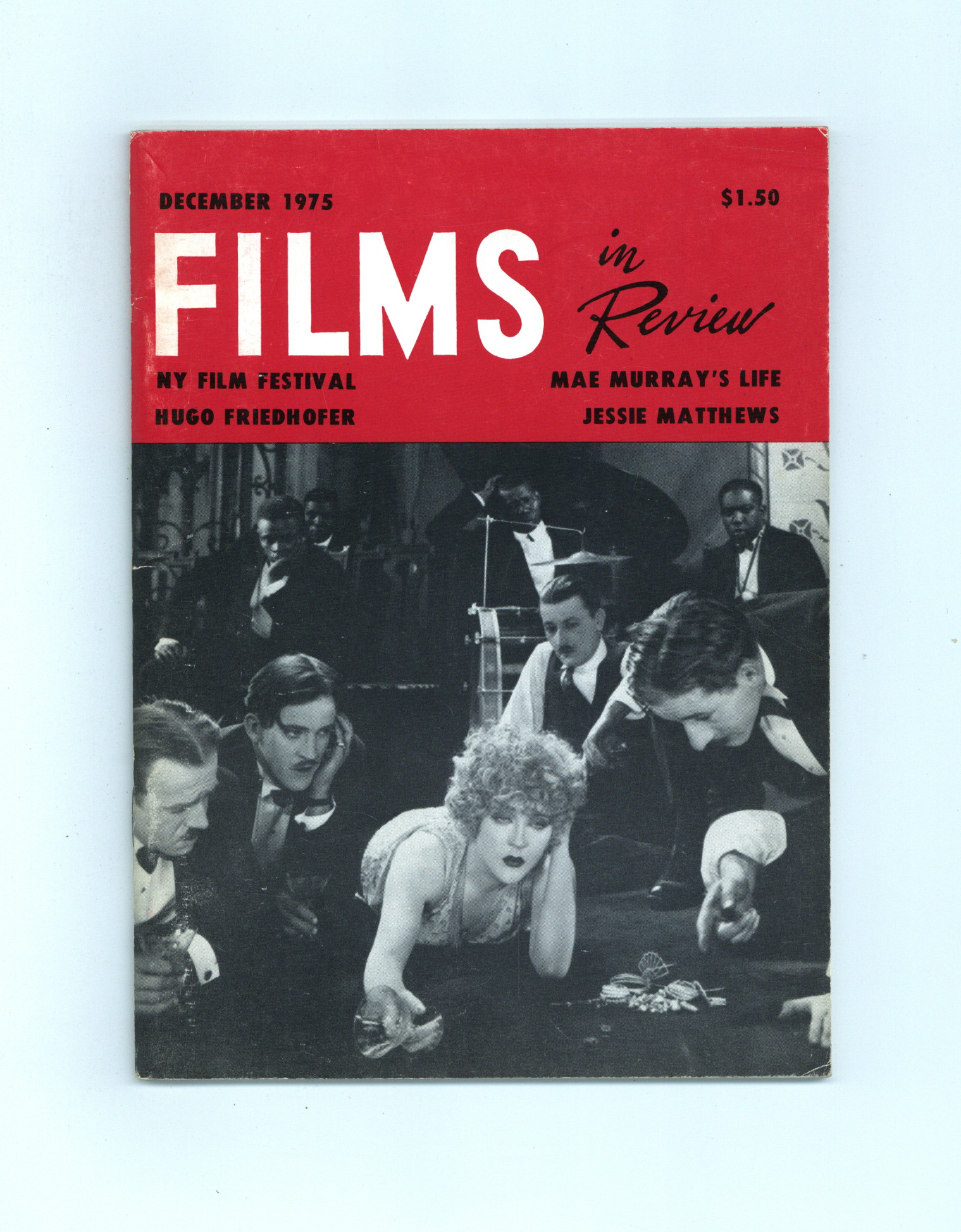Published Dec 1975 by National Board of Review of Motion Pictures Inc..$12.00Film in Review is a publication of the National Board of Review of Motion Pictures, Inc, an independent, non-profit organization of public citizens founded in 1909 to represent the interests of the motion picture public. This National Board further assists the development of the motion picture as a source of entertainment, as education, and as art, by providing media for the expression of the public's opinion about films and their cultural and social effects. 5 1/2-in. x 7 1/2-in., 64 pages, B&W. Cover price $1.50.