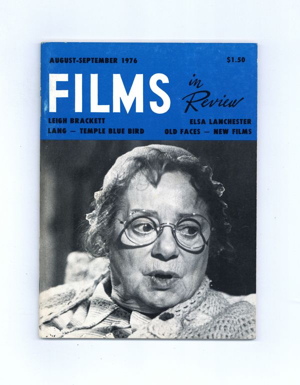 Published Sep 1976 by National Board of Review of Motion Pictures Inc..$12.75Film in Review is a publication of the National Board of Review of Motion Pictures, Inc, an independent, non-profit organization of public citizens founded in 1909 to represent the interests of the motion picture public. This National Board further assists the development of the motion picture as a source of entertainment, as education, and as art, by providing media for the expression of the public's opinion about films and their cultural and social effects. 5 1/2-in. x 7 1/2-in., 64 pages, B&W. Cover price $1.50.