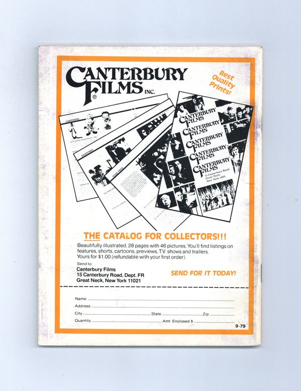 Published Oct 1979 by National Board of Review of Motion Pictures Inc..$11.00Film in Review is a publication of the National Board of Review of Motion Pictures, Inc, an independent, non-profit organization of public citizens founded in 1909 to represent the interests of the motion picture public. This National Board further assists the development of the motion picture as a source of entertainment, as education, and as art, by providing media for the expression of the public's opinion about films and their cultural and social effects. 5 1/2-in. x 7 1/2-in., 64 pages, B&W. Cover price $1.75.