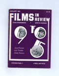 Film in Review is a publication of the National Board of Review of Motion Pictures, Inc, an independent, non-profit organization of public citizens founded in 1909 to represent the interests of the motion picture public. This National Board further assists the development of the motion picture as a source of entertainment, as education, and as art, by providing media for the expression of the public's opinion about films and their cultural and social effects. 5 1/2-in. x 7 1/2-in., 64 pages, B&W. Cover price $1.75.