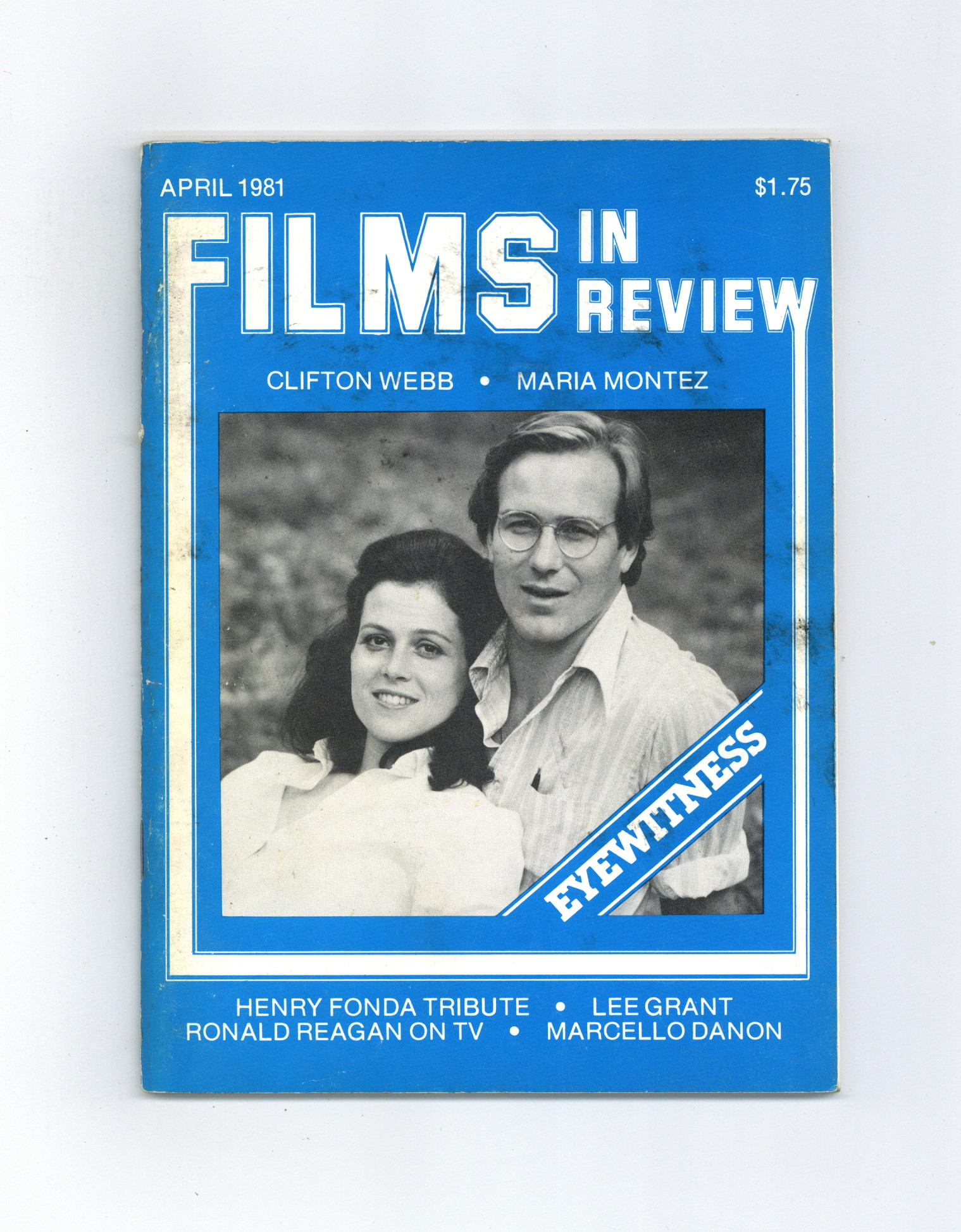 Published Apr 1981 by National Board of Review of Motion Pictures Inc..$15.00Film in Review is a publication of the National Board of Review of Motion Pictures, Inc, an independent, non-profit organization of public citizens founded in 1909 to represent the interests of the motion picture public. This National Board further assists the development of the motion picture as a source of entertainment, as education, and as art, by providing media for the expression of the public's opinion about films and their cultural and social effects. 5 1/2-in. x 7 1/2-in., 64 pages, B&W. Cover price $1.75.