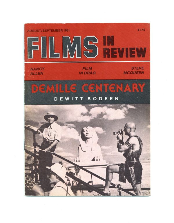 Published Sep 1981 by National Board of Review of Motion Pictures Inc..$17.00Film in Review is a publication of the National Board of Review of Motion Pictures, Inc, an independent, non-profit organization of public citizens founded in 1909 to represent the interests of the motion picture public. This National Board further assists the development of the motion picture as a source of entertainment, as education, and as art, by providing media for the expression of the public's opinion about films and their cultural and social effects. 5 1/2-in. x 7 1/2-in., 64 pages, B&W. Cover price $1.75.