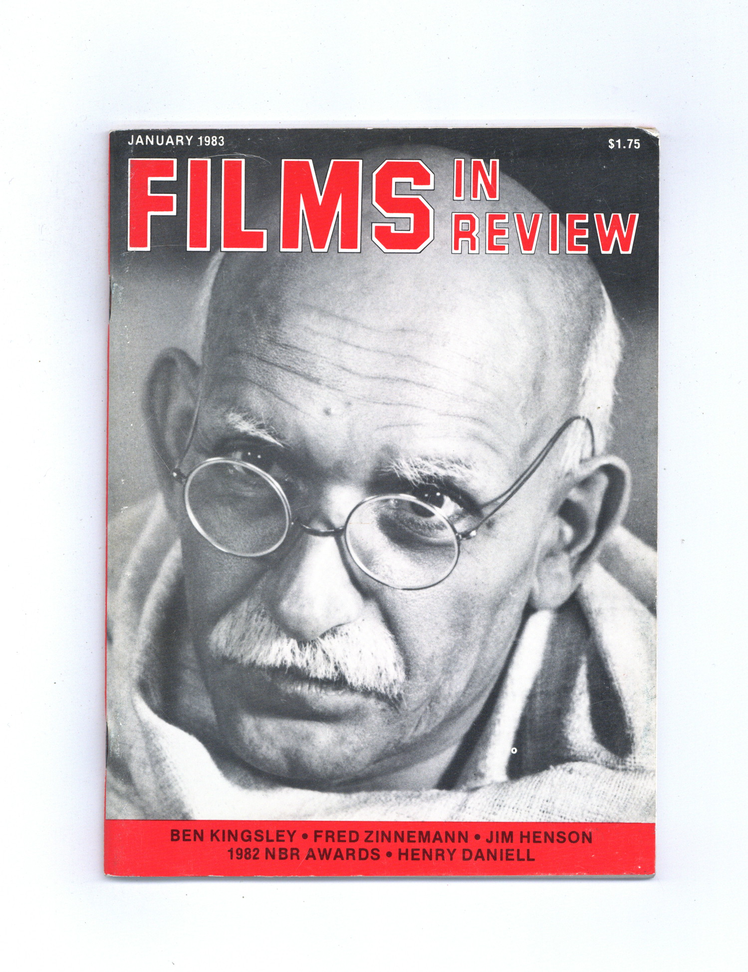 Published Jan 1983 by National Board of Review of Motion Pictures Inc..$17.00Film in Review is a publication of the National Board of Review of Motion Pictures, Inc, an independent, non-profit organization of public citizens founded in 1909 to represent the interests of the motion picture public. This National Board further assists the development of the motion picture as a source of entertainment, as education, and as art, by providing media for the expression of the public's opinion about films and their cultural and social effects. 5 1/2-in. x 7 1/2-in., 64 pages, B&W. Cover price $1.75.