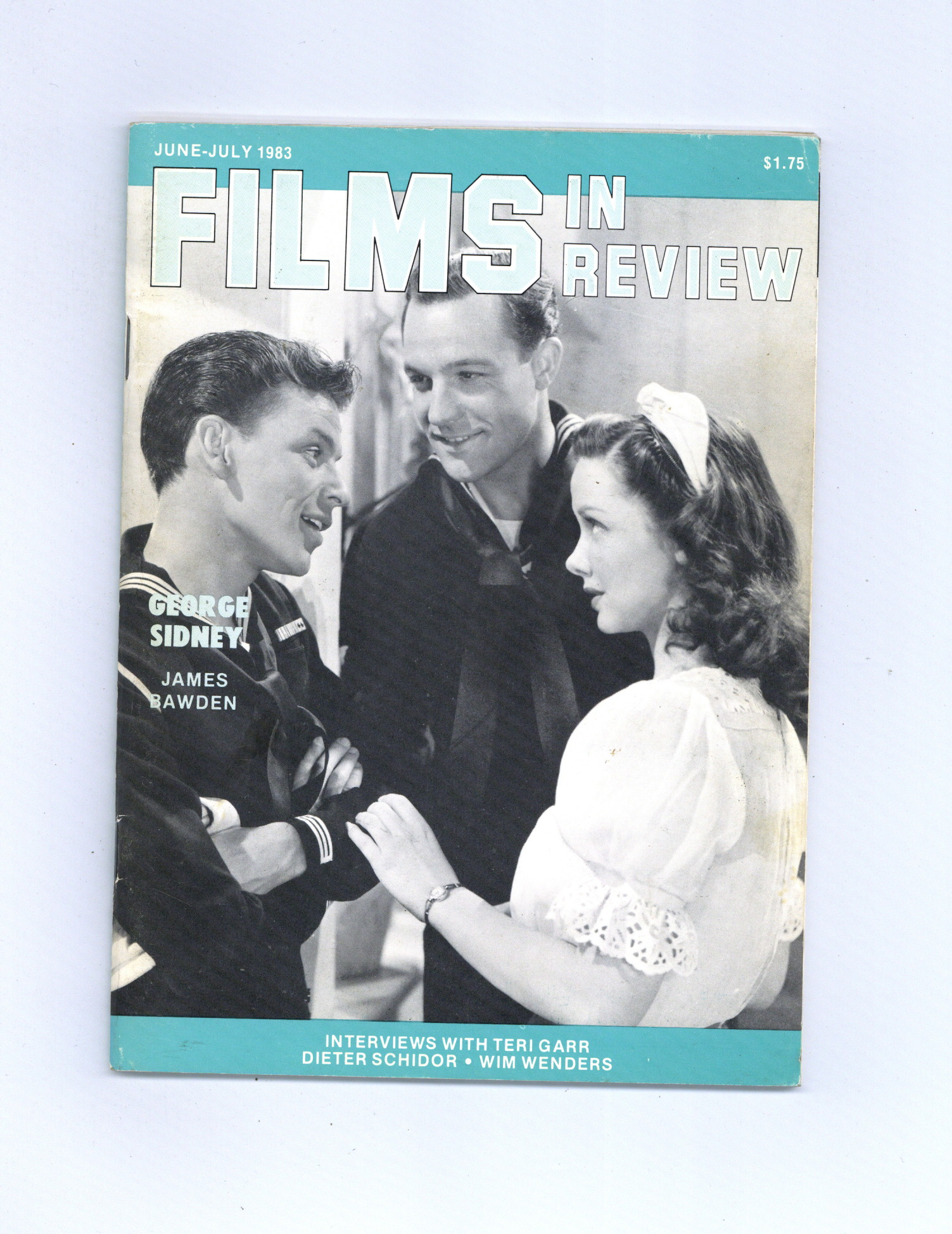 Published Jul 1983 by National Board of Review of Motion Pictures Inc..$17.00Film in Review is a publication of the National Board of Review of Motion Pictures, Inc, an independent, non-profit organization of public citizens founded in 1909 to represent the interests of the motion picture public. This National Board further assists the development of the motion picture as a source of entertainment, as education, and as art, by providing media for the expression of the public's opinion about films and their cultural and social effects. 5 1/2-in. x 7 1/2-in., 64 pages, B&W. Cover price $1.75.