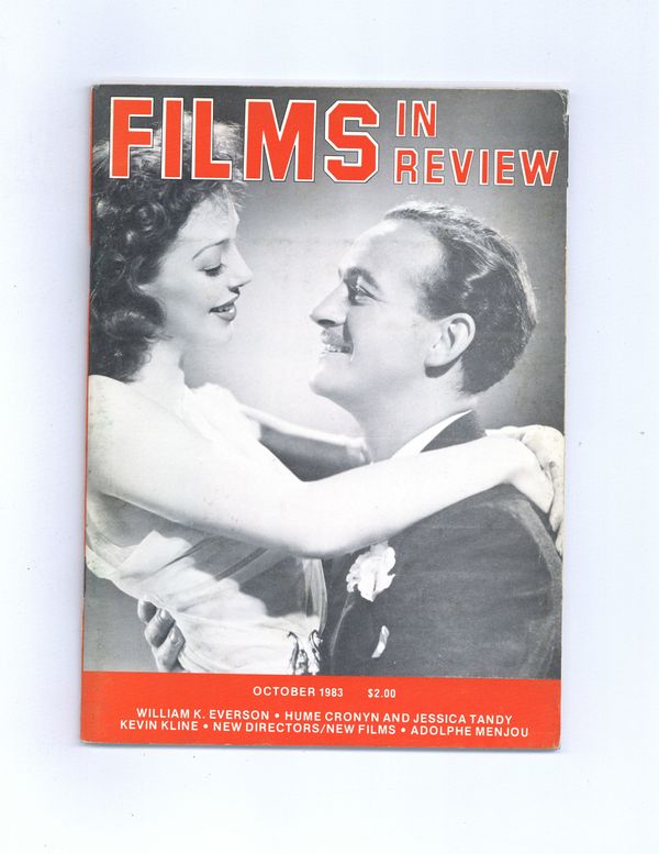 Published Oct 1983 by National Board of Review of Motion Pictures Inc..$10.00Film in Review is a publication of the National Board of Review of Motion Pictures, Inc, an independent, non-profit organization of public citizens founded in 1909 to represent the interests of the motion picture public. This National Board further assists the development of the motion picture as a source of entertainment, as education, and as art, by providing media for the expression of the public's opinion about films and their cultural and social effects. 5 1/2-in. x 7 1/2-in., 64 pages, B&W. Cover price $2.00.