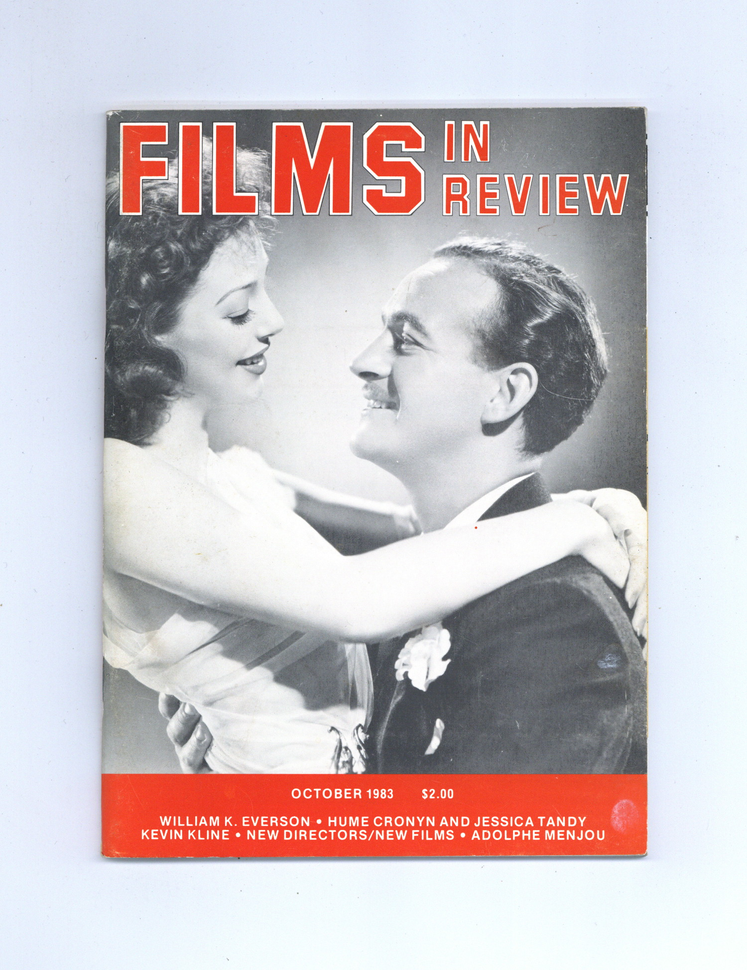 Published Oct 1983 by National Board of Review of Motion Pictures Inc..$9.60Film in Review is a publication of the National Board of Review of Motion Pictures, Inc, an independent, non-profit organization of public citizens founded in 1909 to represent the interests of the motion picture public. This National Board further assists the development of the motion picture as a source of entertainment, as education, and as art, by providing media for the expression of the public's opinion about films and their cultural and social effects. 5 1/2-in. x 7 1/2-in., 64 pages, B&W. Cover price $2.00.