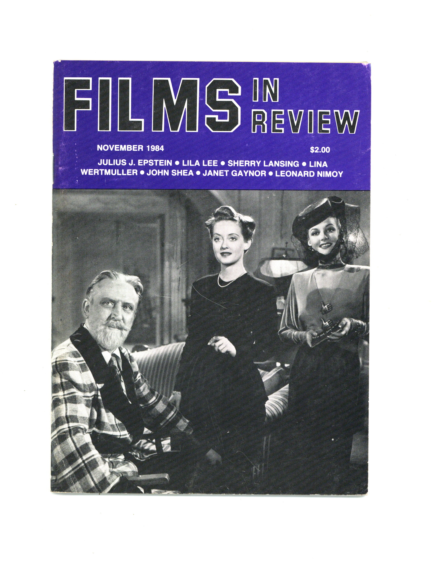 Published Nov 1984 by National Board of Review of Motion Pictures Inc..$17.00Film in Review is a publication of the National Board of Review of Motion Pictures, Inc, an independent, non-profit organization of public citizens founded in 1909 to represent the interests of the motion picture public. This National Board further assists the development of the motion picture as a source of entertainment, as education, and as art, by providing media for the expression of the public's opinion about films and their cultural and social effects. 5 1/2-in. x 7 1/2-in., 64 pages, B&W. Cover price $2.00.