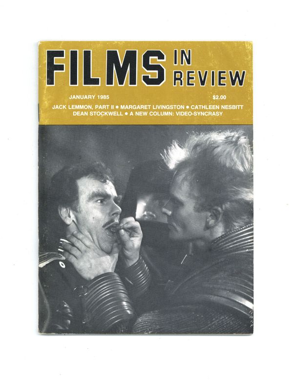 Published Jan 1985 by National Board of Review of Motion Pictures Inc..$17.00Film in Review is a publication of the National Board of Review of Motion Pictures, Inc, an independent, non-profit organization of public citizens founded in 1909 to represent the interests of the motion picture public. This National Board further assists the development of the motion picture as a source of entertainment, as education, and as art, by providing media for the expression of the public's opinion about films and their cultural and social effects. 5 1/2-in. x 7 1/2-in., 64 pages, B&W. Cover price $2.00.